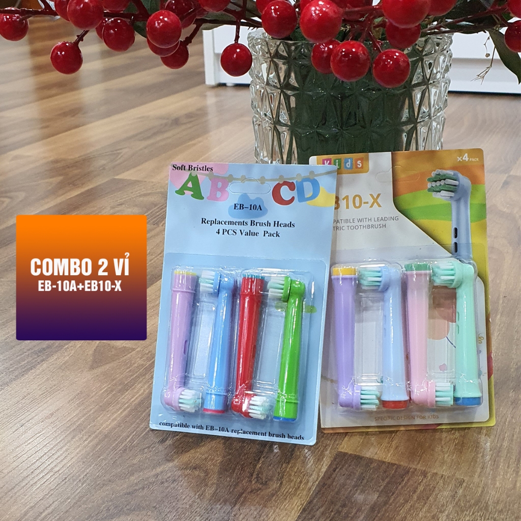 Cho máy Oral B, Bộ 4 đầu bàn chải Trẻ em EB10A, EB10X Stages Power đánh răng điện, Hộp, Giá treo Minh House