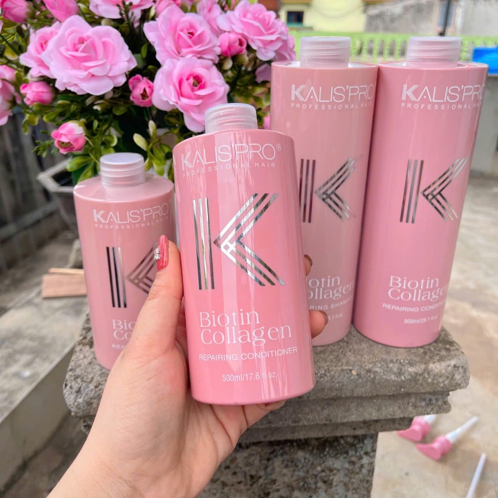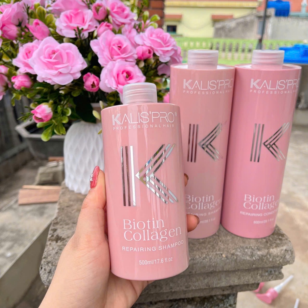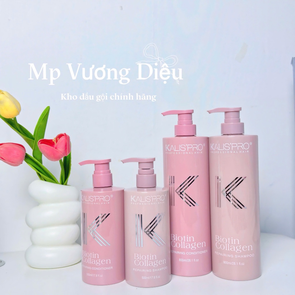 Dầu Gội Biotin Collagen Kalispro lưu hương lâu, hương nước hoa, phục hồi hư tổn, mềm mượt hỗ trợ mọc tóc 500ml, 800mlx2