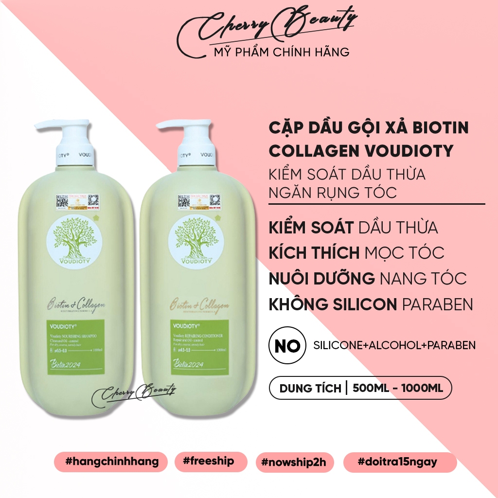 Dầu gội xả Biotin Collagen Voudioty giảm rụng tóc, phục hồi hư tổn, giảm gàu, kiềm dầu 500ml-1000ml