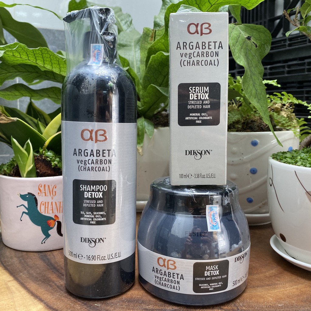 Dầu gội và hấp DIKSON ARGABETA VEGCARBON (CHARCOAL) DETOX thải độc tóc và da đầu 500mlx2 NC