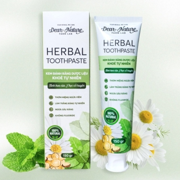 [ Kem đánh răng thảo dược Dear Nature 150gr ] làm sạch trắng răng tự nhiên Herbal Toothpaste