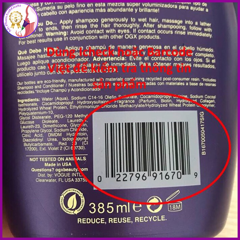 Biotin collagen ogx dầu gội giảm gàu - giảm rụng và hỗ trợ mọc tóc 385ml usa