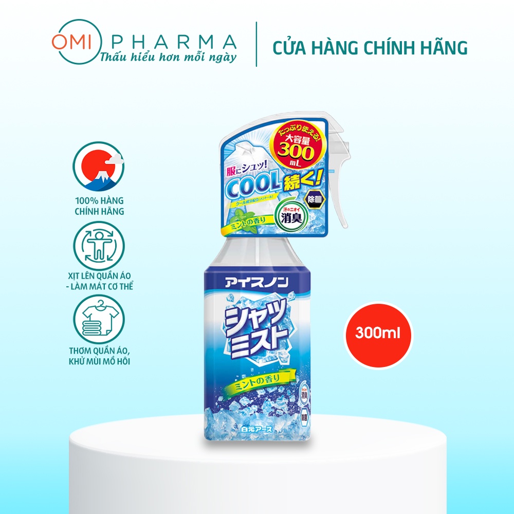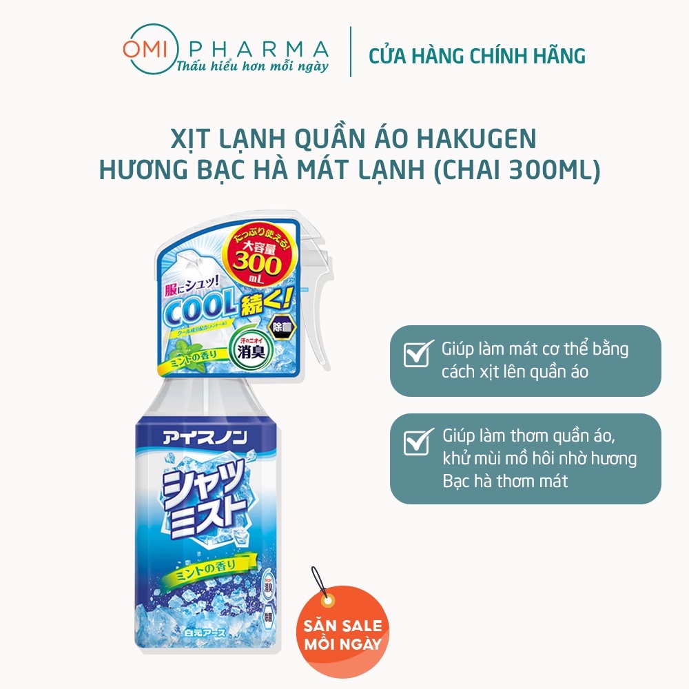 Xịt Lạnh Quần Áo Làm Mát Cơ Thể Hakugen Nhật Bản Hương Bạc Hà Thơm Mát Lạnh 300ml