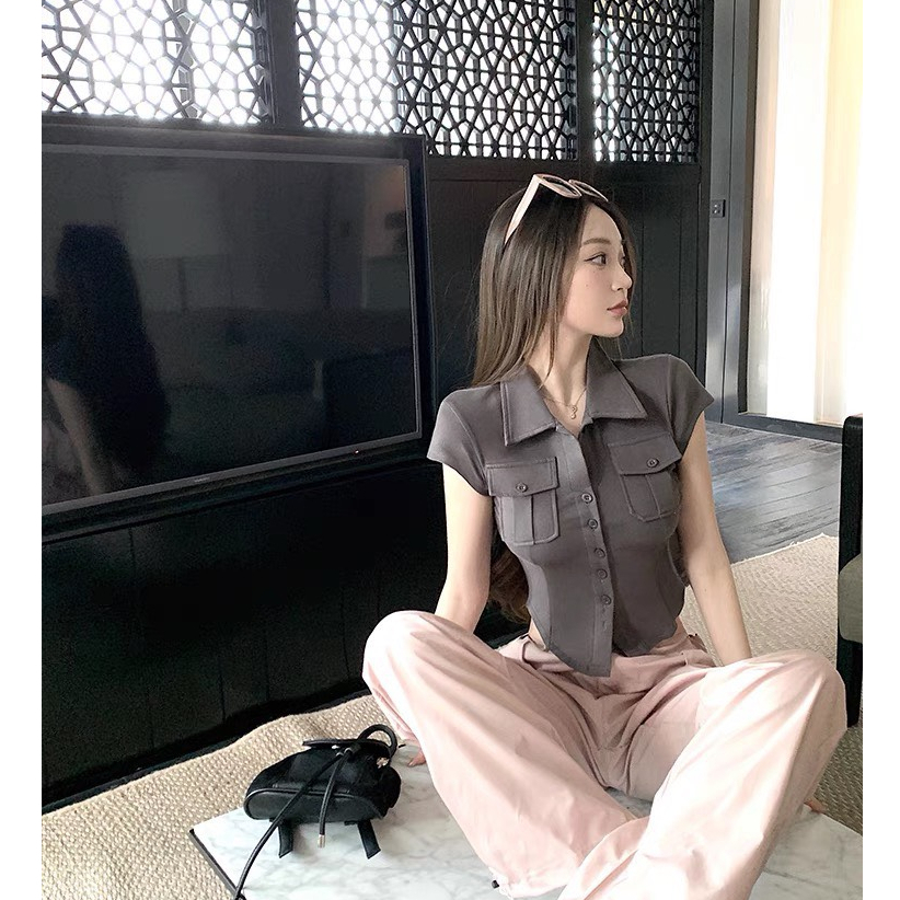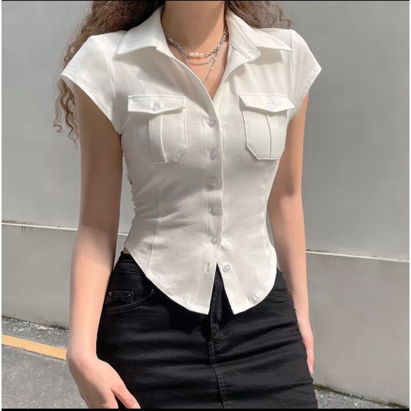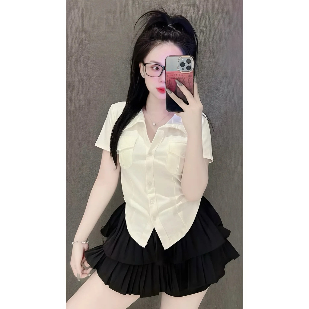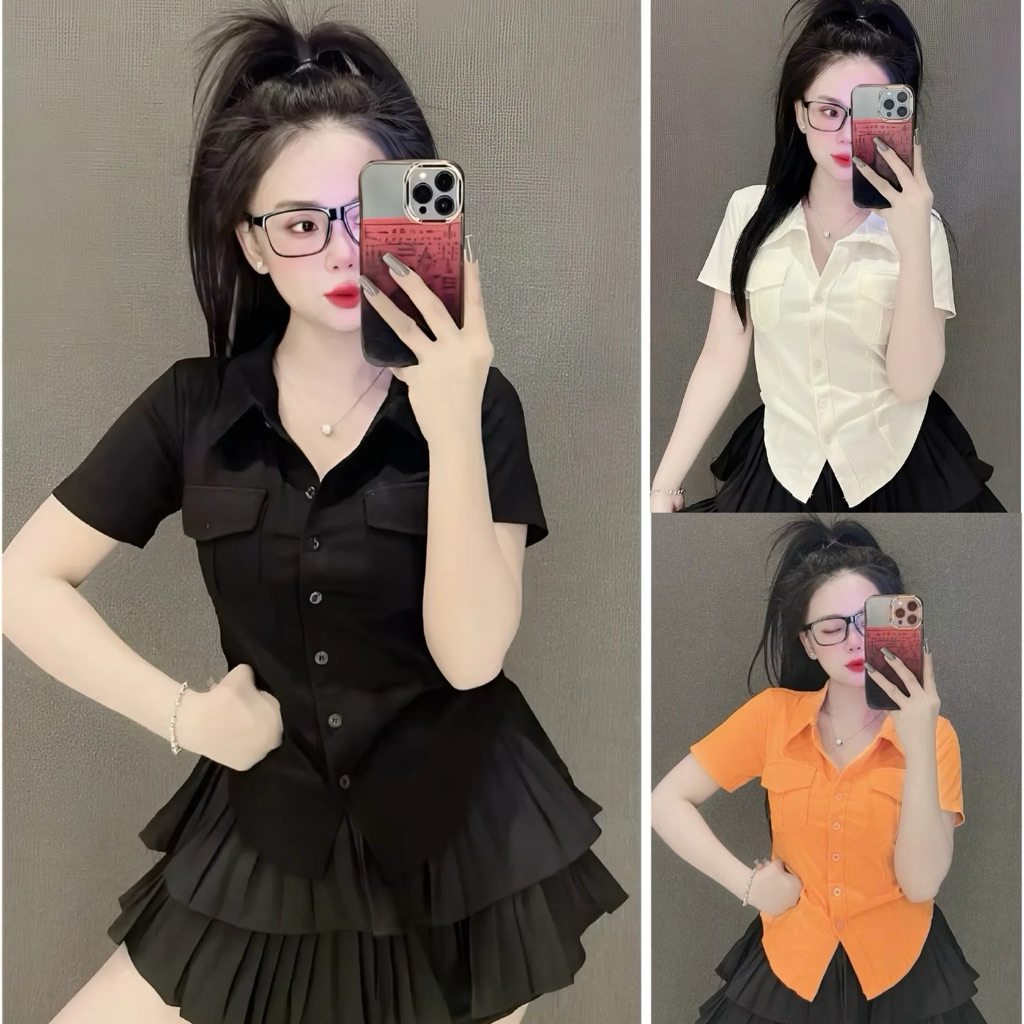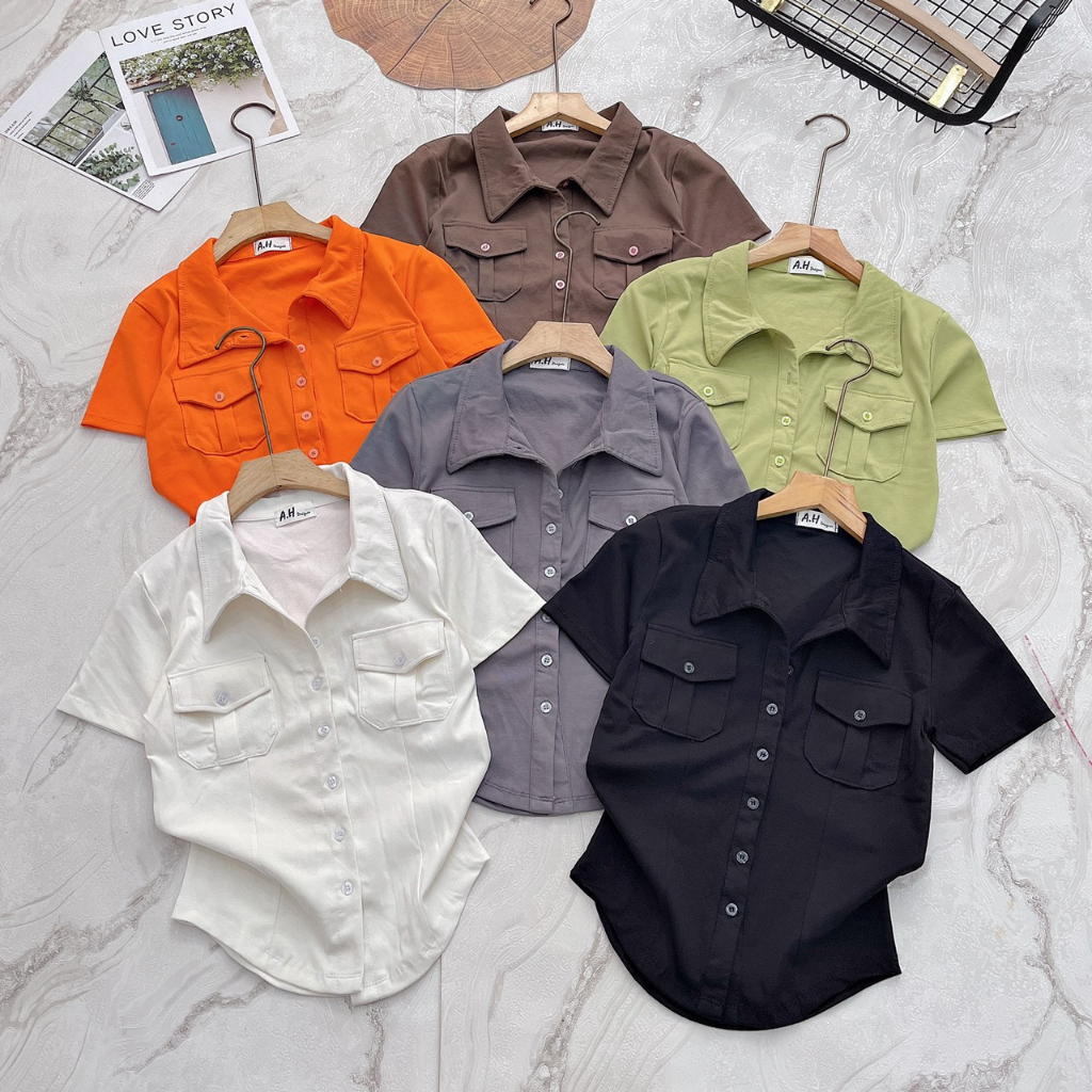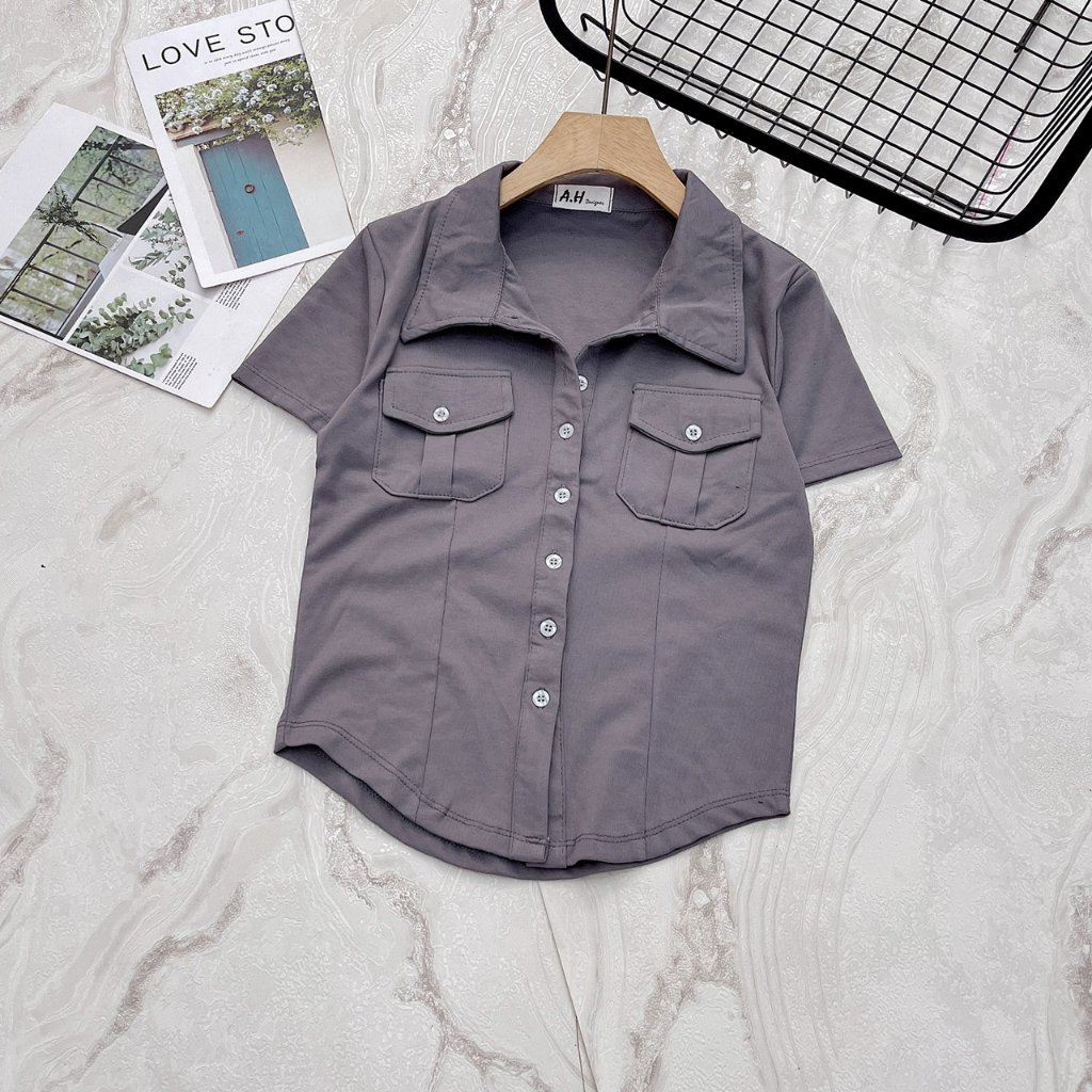 Áo thun PHOM ÔM nữ kiểu sơ mi phối túi nắp ( Túi nắp mới ) A.H