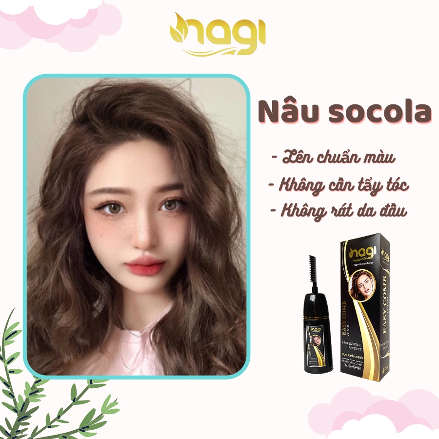 Dầu gội nhuộm tóc thảo dược Nagi Nâu Socola Chocolate Brown 07 chiết xuất từ thiên chiên chai 400ml