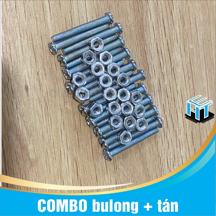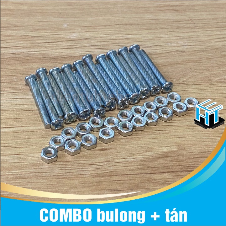 COMBO 20 con Bulong ốc vít M4 + tán (đai ốc) nhiều kích thước