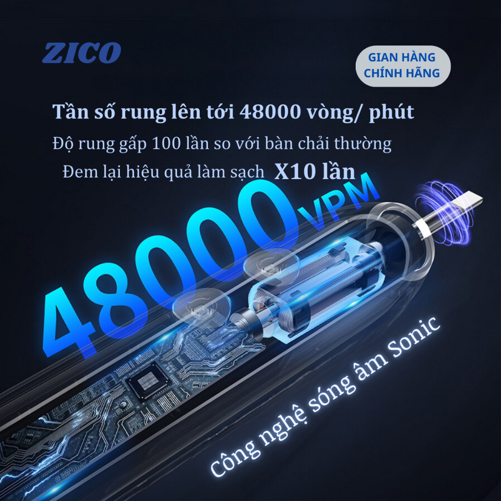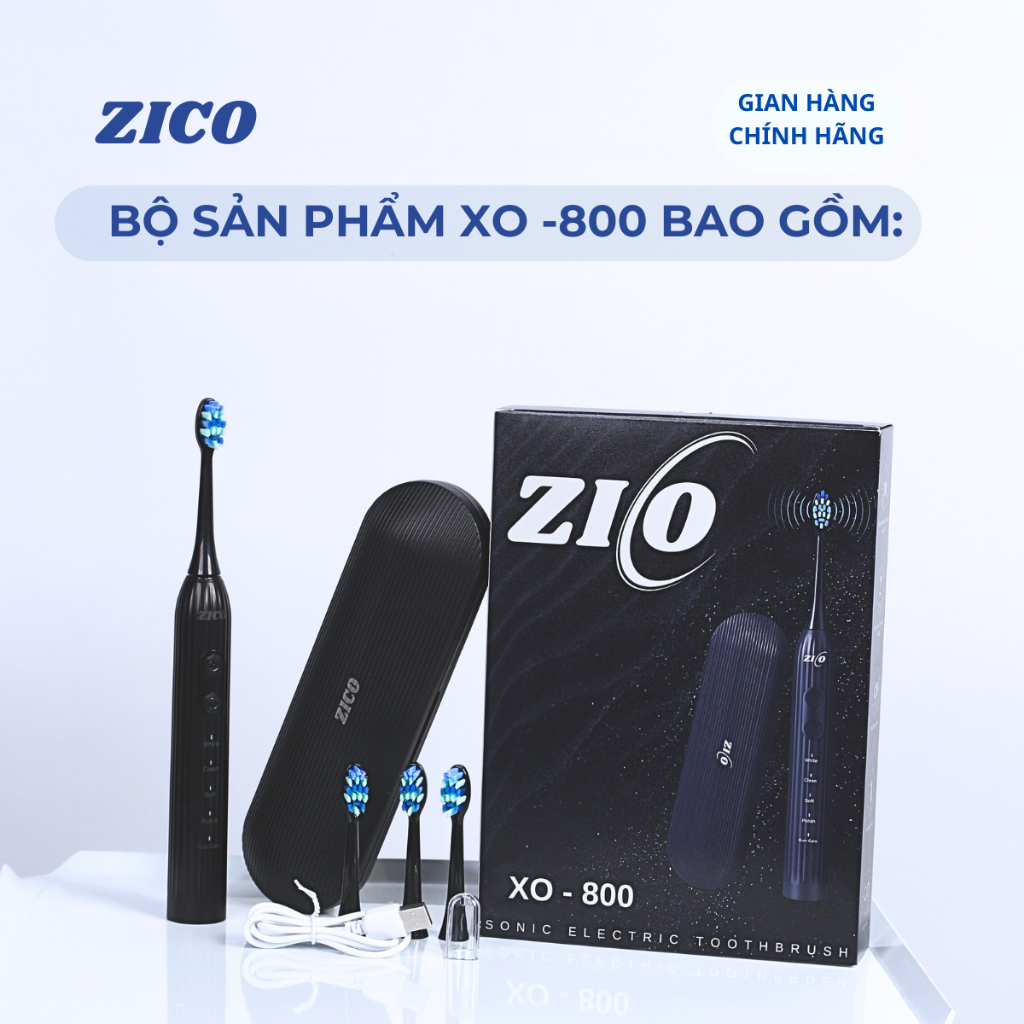 Bàn chải điện ZICO XO-800, công nghệ sóng siêu âm Sonic 5 chế độ, chuyển động nhẹ nhàng, trắng sạch răng