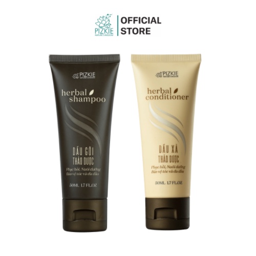 COMBO Dầu Gội-Dầu Xả Thảo Dược Herbal PIZKIE 500ML Sạch Gàu, Giúp Tóc Chắc Khỏe