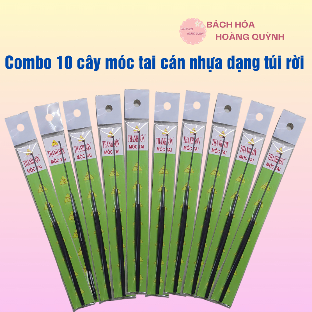 Combo 10 cây móc tai cán nhựa đen Thanh Sơn , cây ráy tai cán nhựa dài có túi rời.