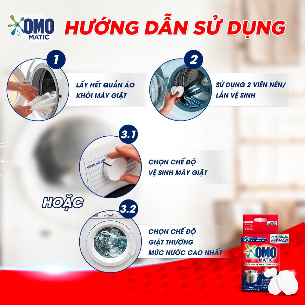 Combo 12 Viên Nén Vệ Sinh Lồng Giặt OMO Matic (20gr/viên)