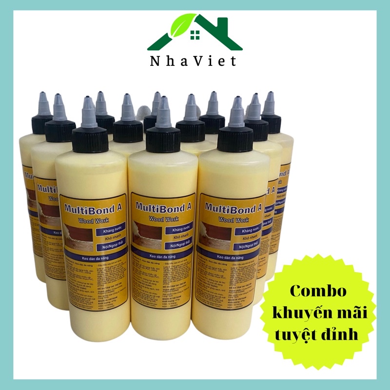 Combo 12 chai keo dán gỗ đa năng MultiBond A, chuyên dụng ván ghép, ép gỗ, siêu dính, nhanh khô