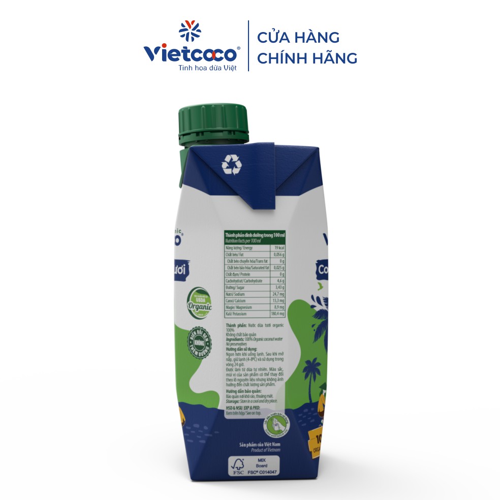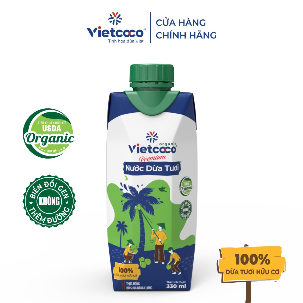 Combo 2 hộp Nước dừa tươi UHT VIETCOCO - Organic - 330ml