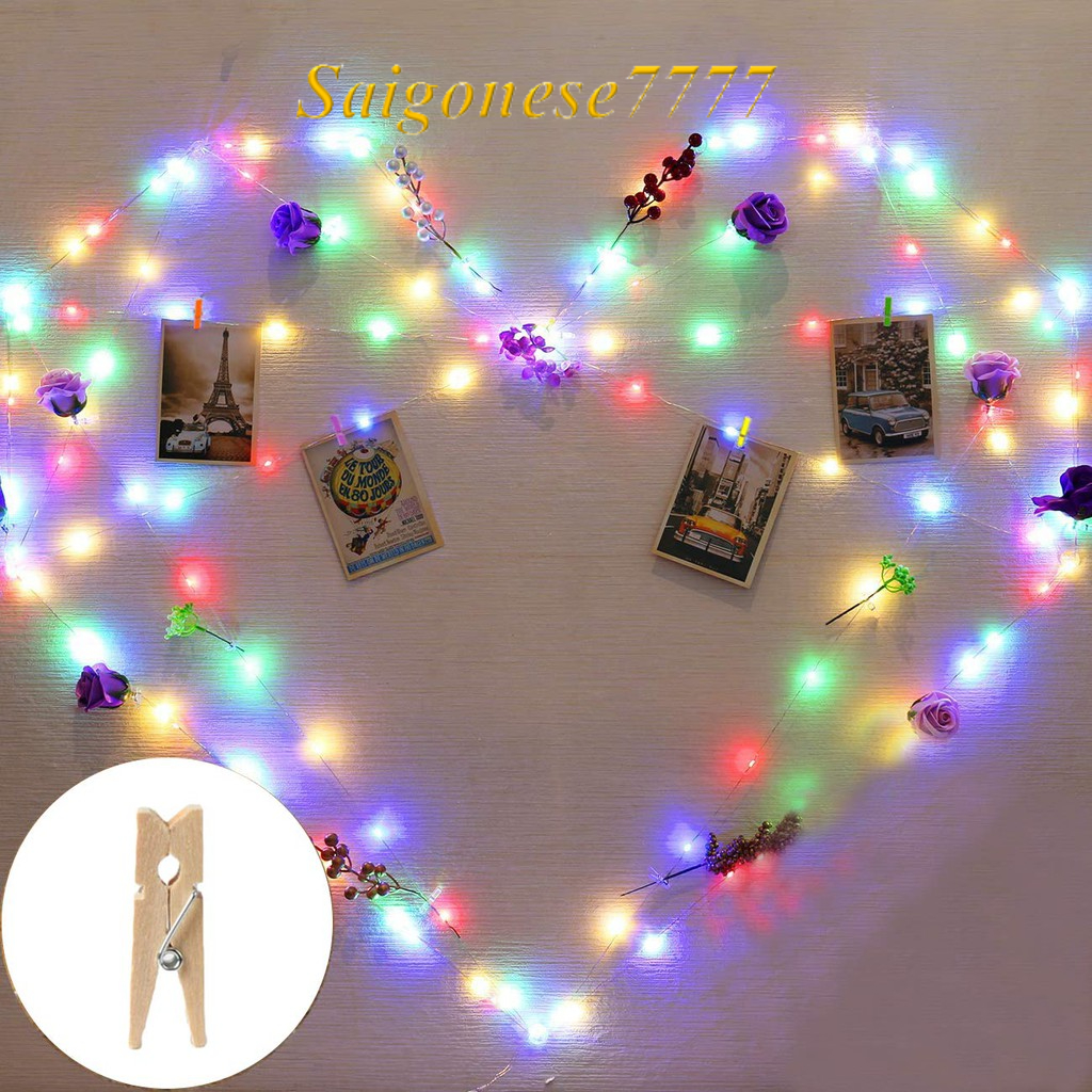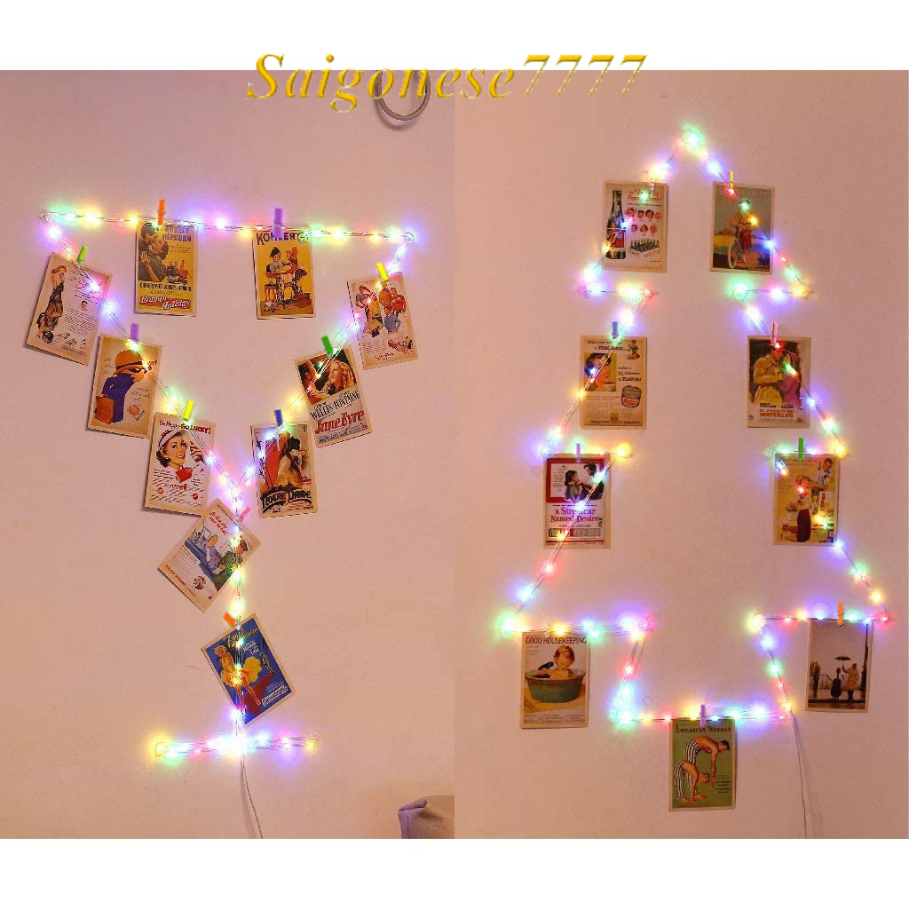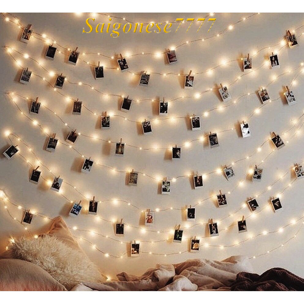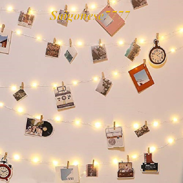 Combo Kẹp Ảnh Gỗ Thông Và Dây Đèn Led Decor Phòng Ngủ Đèn Trang Trí Noel Tiệc Tùng Kẹp Hình Nghệ Thuật