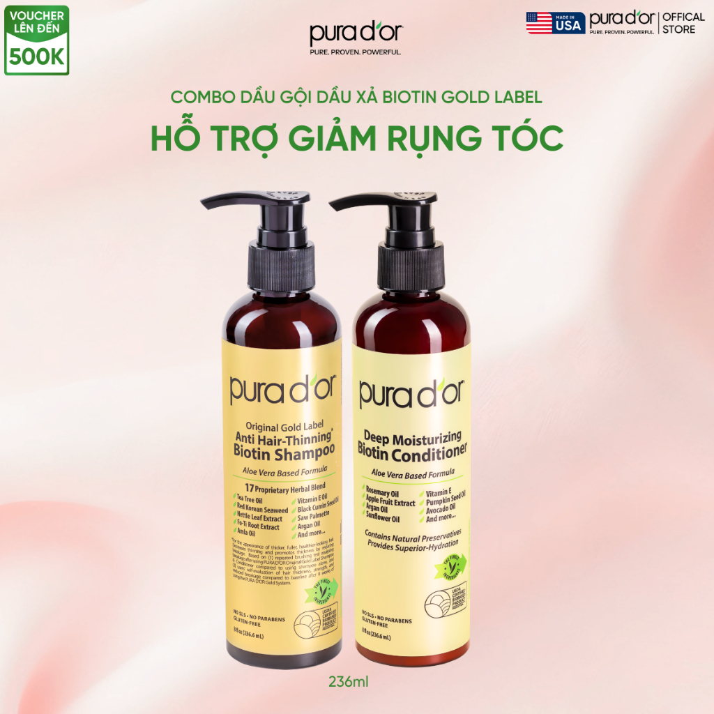 Combo Gội - Xả Biotin Pura D'or Original Gold Label & Deep Moisturizing Chăm Sóc Da Đầu 473ml/236ml