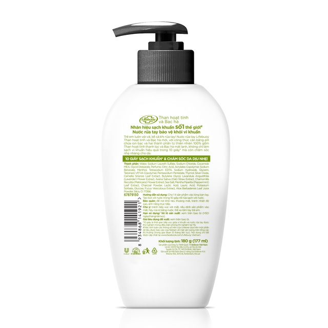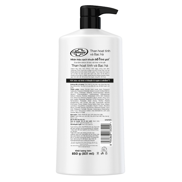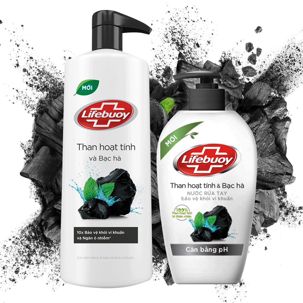 Combo sữa tắm 850g và nước rửa tay 180g Lifebuoy Than Hoạt Tính và Bạc Hà