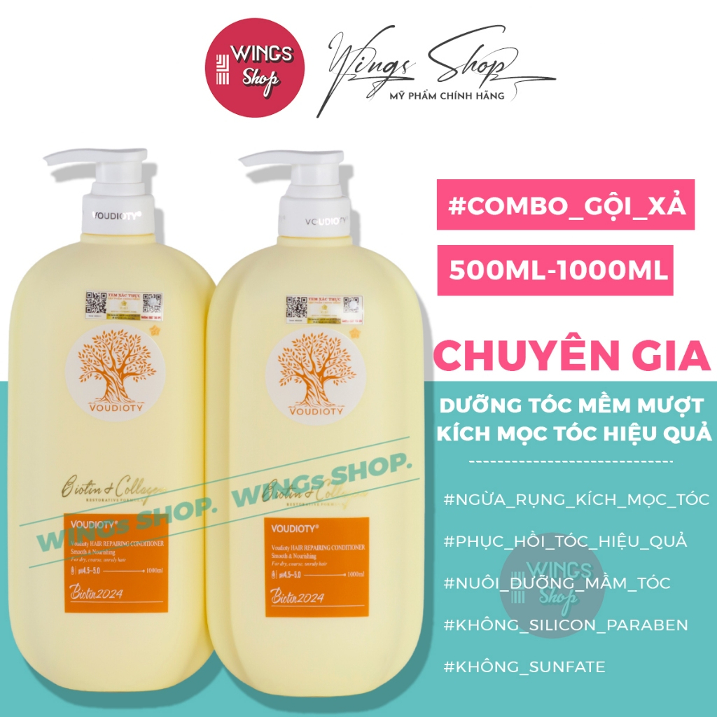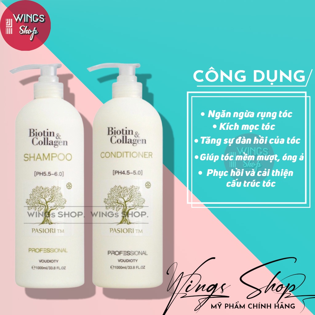 Cặp Dầu Gội Xả Biotin Collagen Giúp giảm rụng tóc, ngăn gàu, kiềm dầu, phục hồi hư tổn 500ml/1000ml