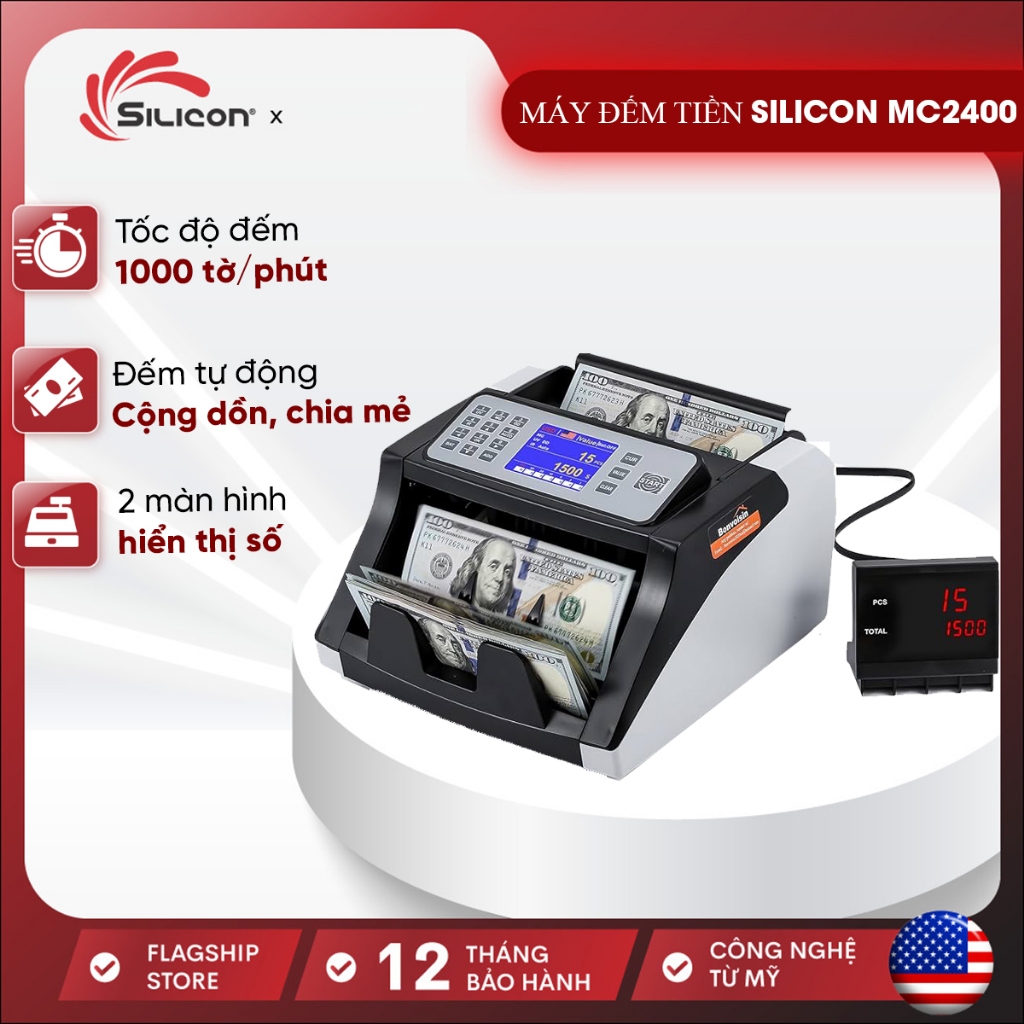Máy đếm tiền Silicon MC-2200 mini nhập khẩu, Tốc độ đếm 1000 tờ/phút, đếm cộng dồn, chia mẻ chính xác polyme, tiền giấy