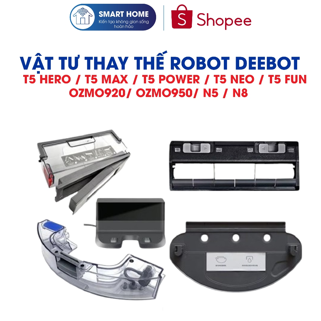 Nắp chặn chổi, hộp rác, tấm gắn khăn, hộp rác, hộp nước tha Thế Robot Deebot T5 Hero,Max,Power, Neo,Fun, ozmo 950-920