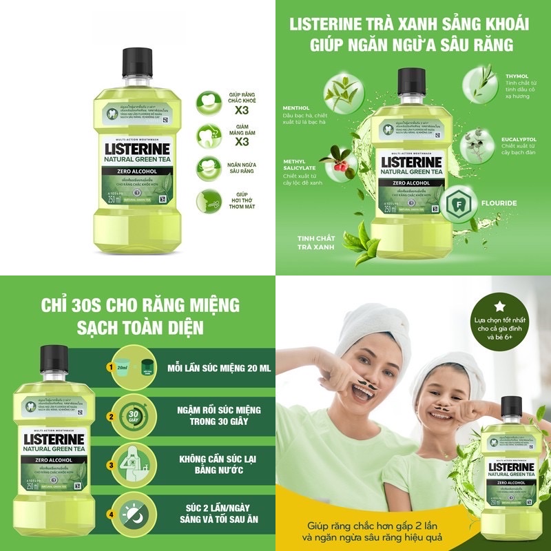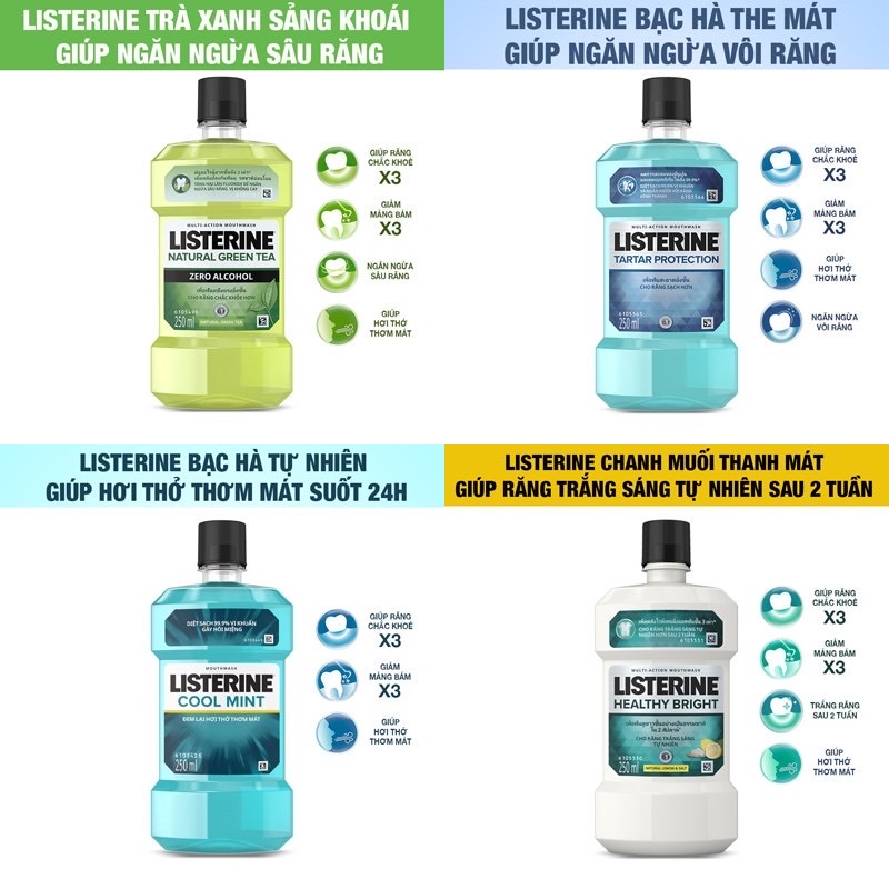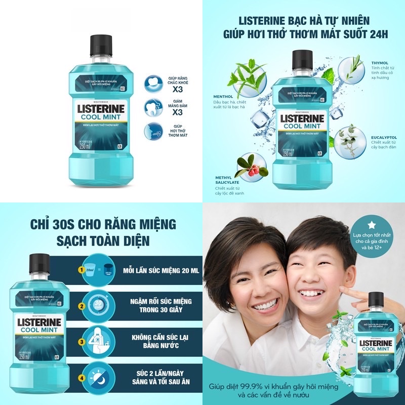 Nước súc miệng Listerine Cool Mint Chai 250ml 750ml (Bibistore TB)