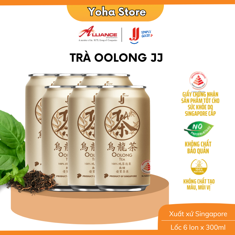 Lốc 6 Lon Trà Ô Long JJ Không Đường, Ủ Tự Nhiên - Nhập Khẩu Singapore, 300ml x 6 Lon