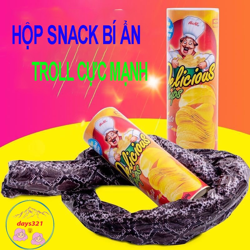 [TROLL CỰC MẠNH] Đồ chơi khăm vui nhộn hình hộp bánh khoai tây có rắn dài 1.3 mét bên trong- Hộp Snack bí ẩn