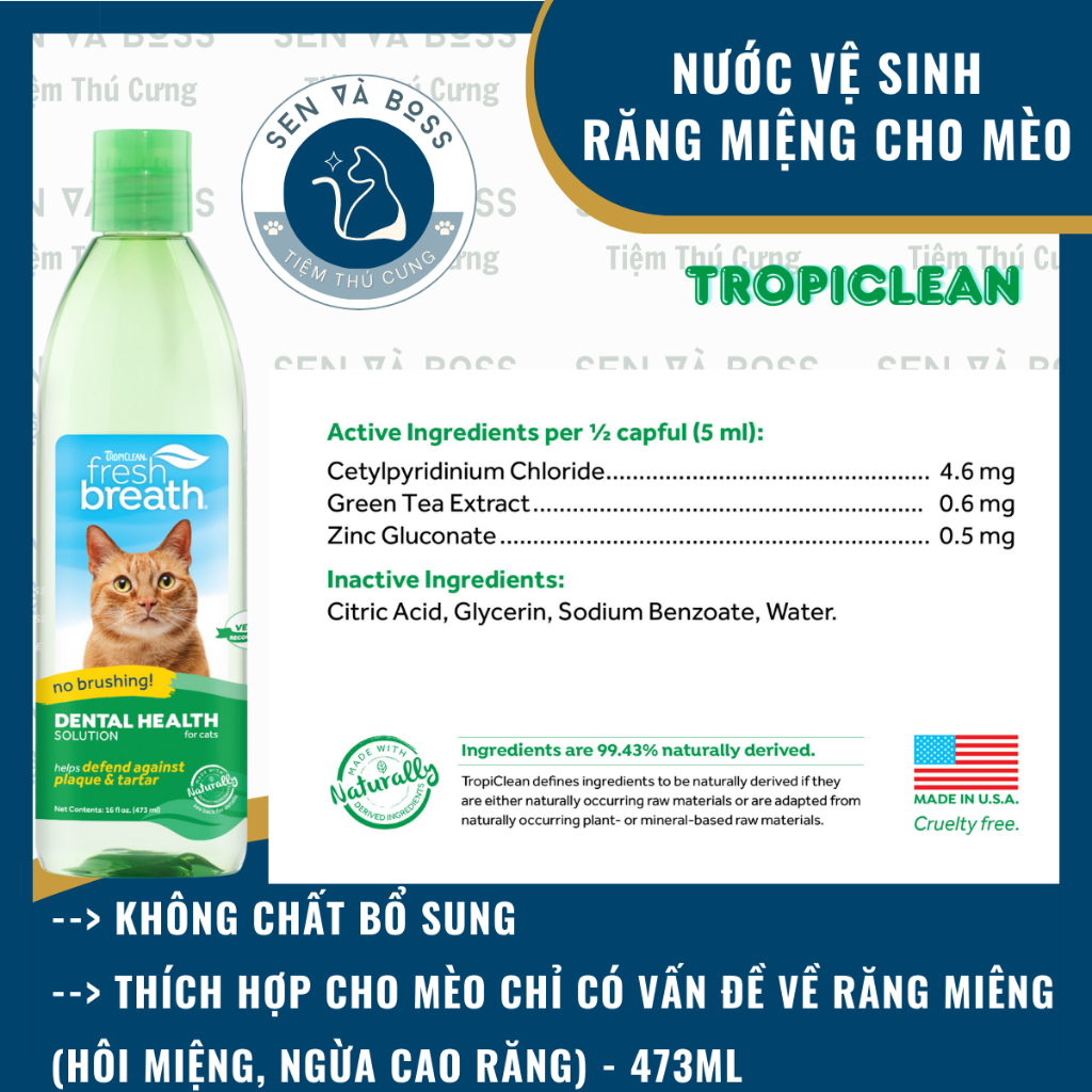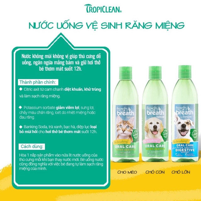 Nước Uống Vệ Sinh Răng Miệng Chó Mèo Tropiclean - Thơm Miệng-giảm Hôi Miệng-thúi Miệng-ngừa Cao Răng