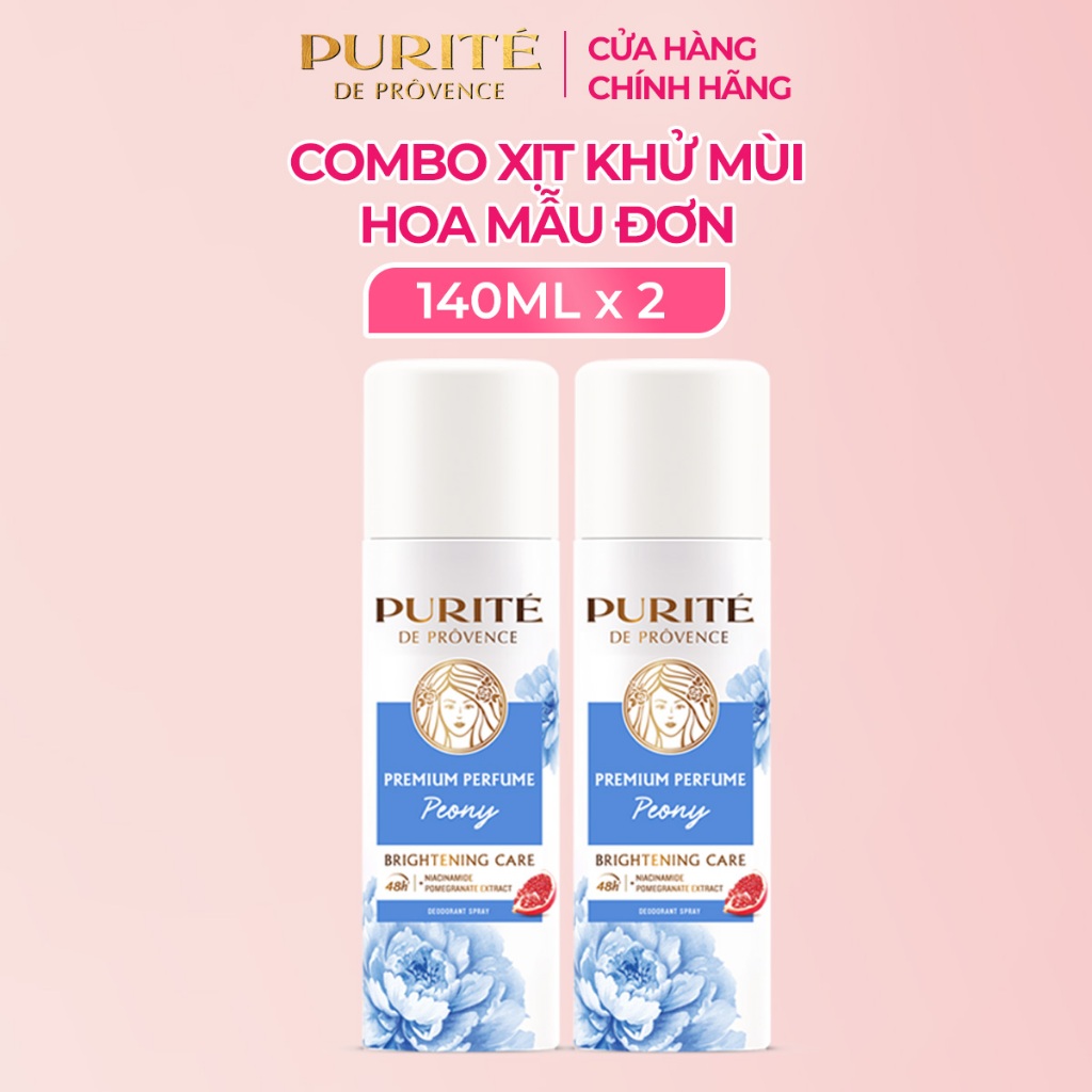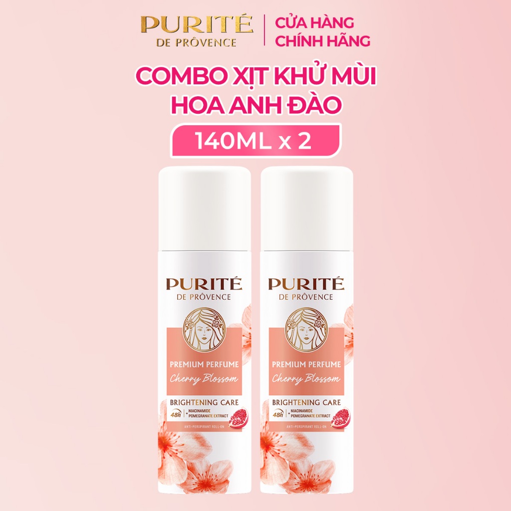 Combo 2 Xịt Khử Mùi Dưỡng Sáng PURITÉ Hương Nước Hoa Hoa Anh Đào/Hoa Hồng/Hoa Mẫu Đơn 140ML