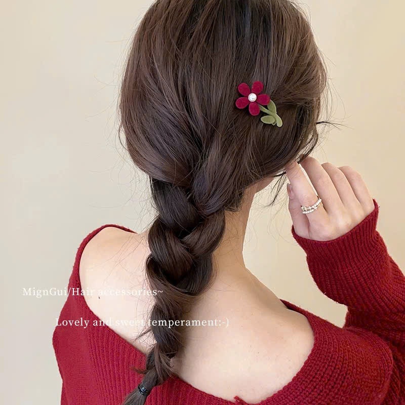 Kẹp Tóc Hoa Và Ngọc Vải Nhung Xinh Xắn