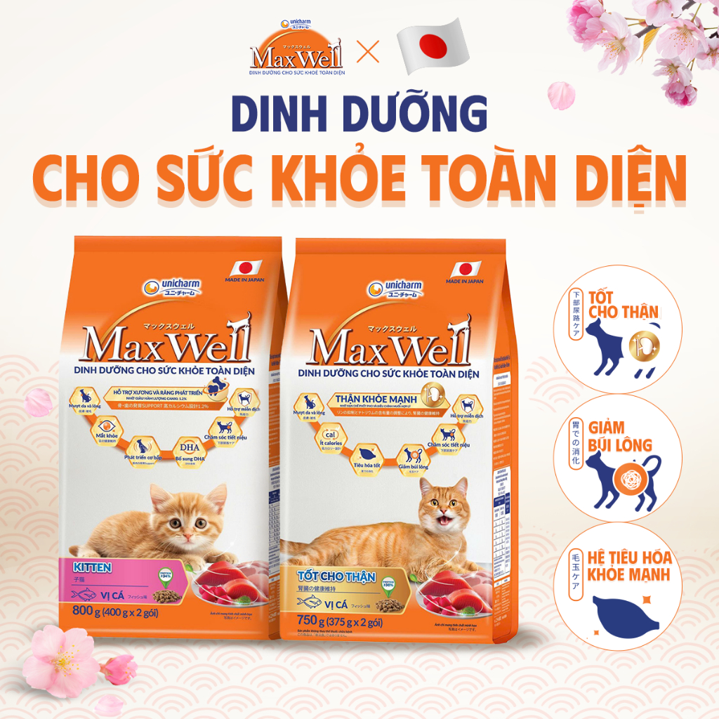 Cháy hàng - Combo hạt cho mèo Max Well tốt cho thận, hỗ trợ tiết niệu - Nhập khẩu Nhật Bản