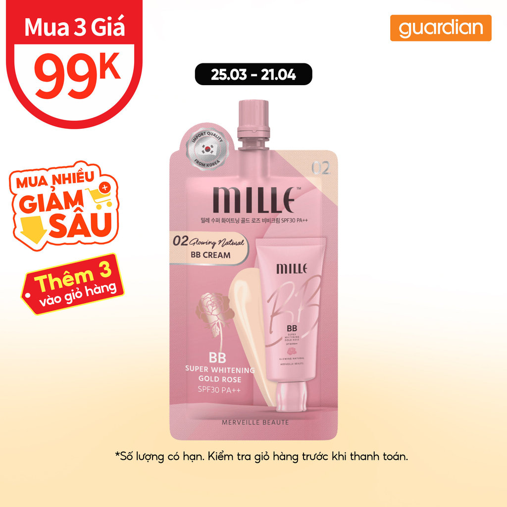 Kem Nền Che Phủ Mille BB Super Whitening Gold Rose SPF 30 PA ++ 6gr