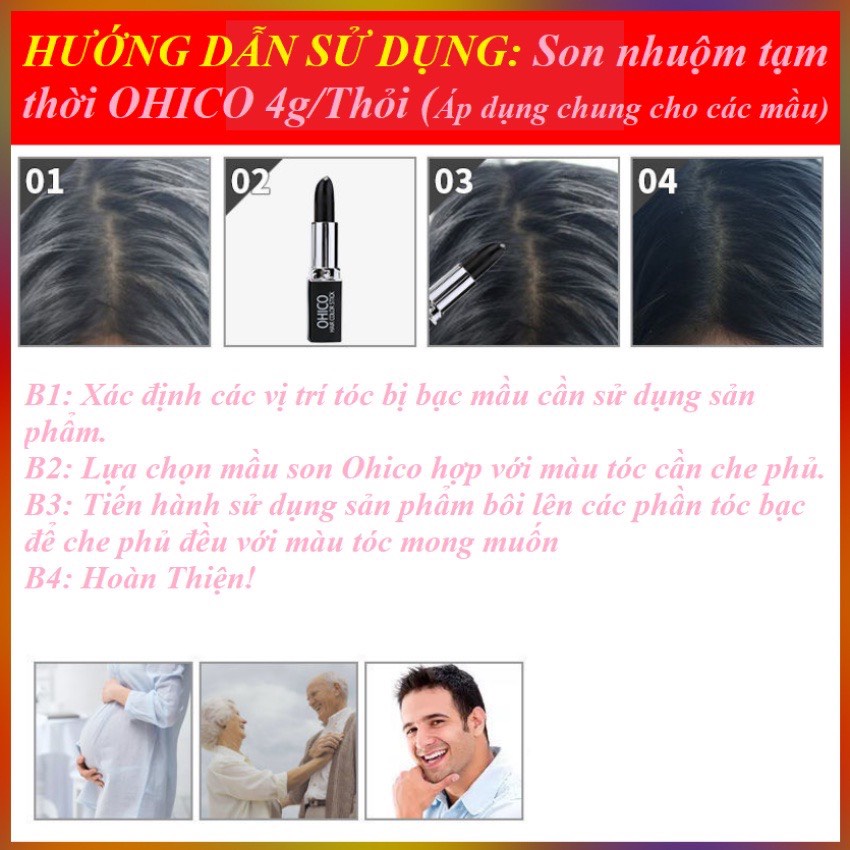 Son nhuộm tóc bạc tạm thời OHICO 04g/Thỏi 04 màu tùy chọn
