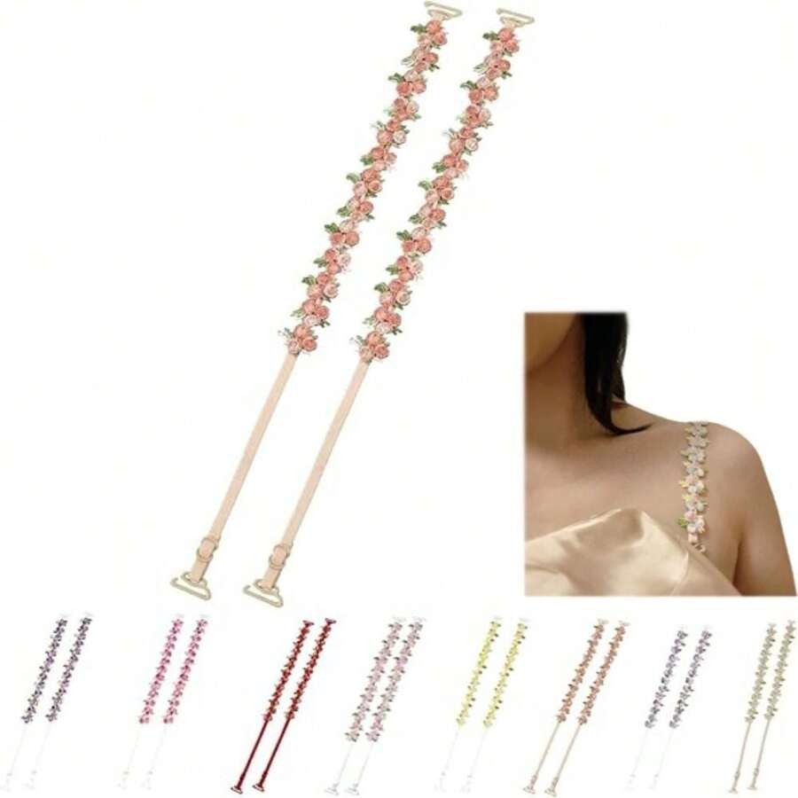 1 Cặp Dây Đeo Áo Ngực Hoa Màu Vàng Mềm Có Thể Điều Chỉnh Chống Trơn Trượt Quần Lót Polyester Dây Đeo Cho Tiệc Cưới Đầm