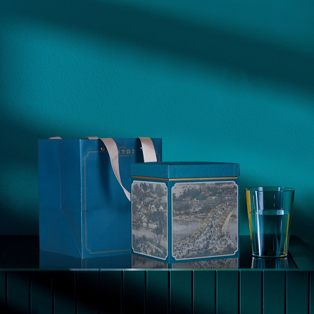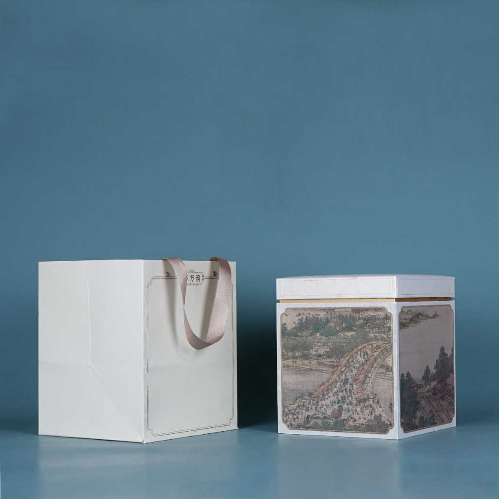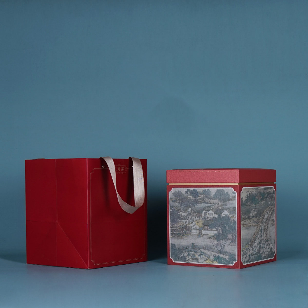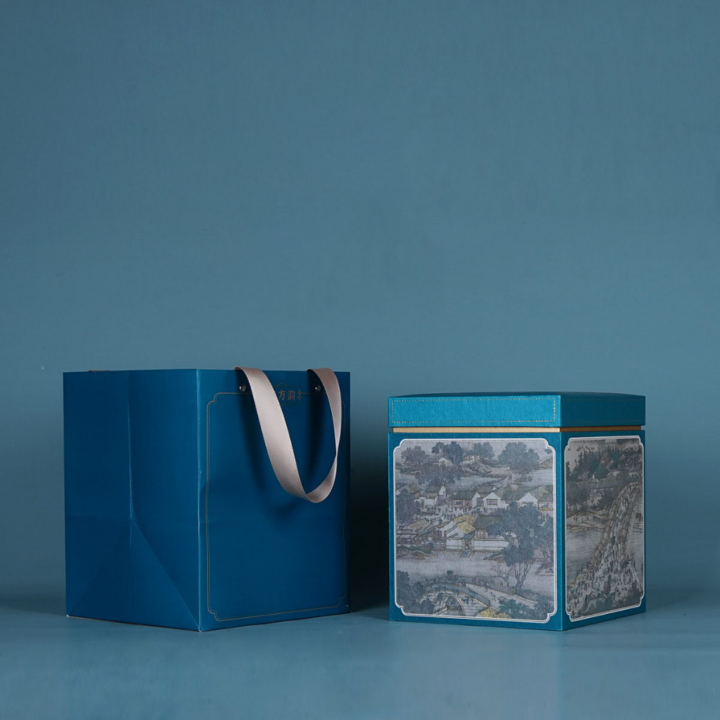 Hộp đựng trà giấy vuông hoạ tiết thời cổ đại kèm túi - TEA BOX