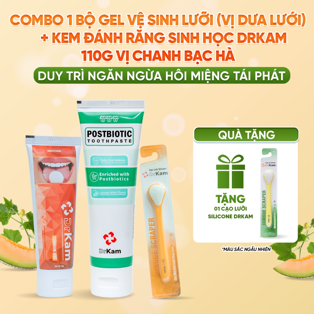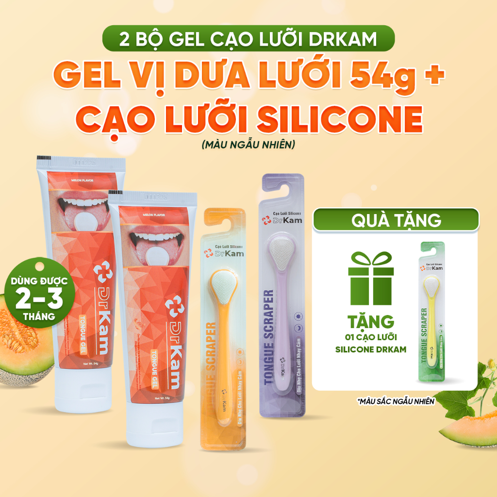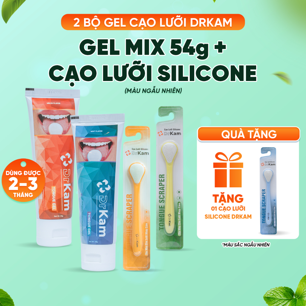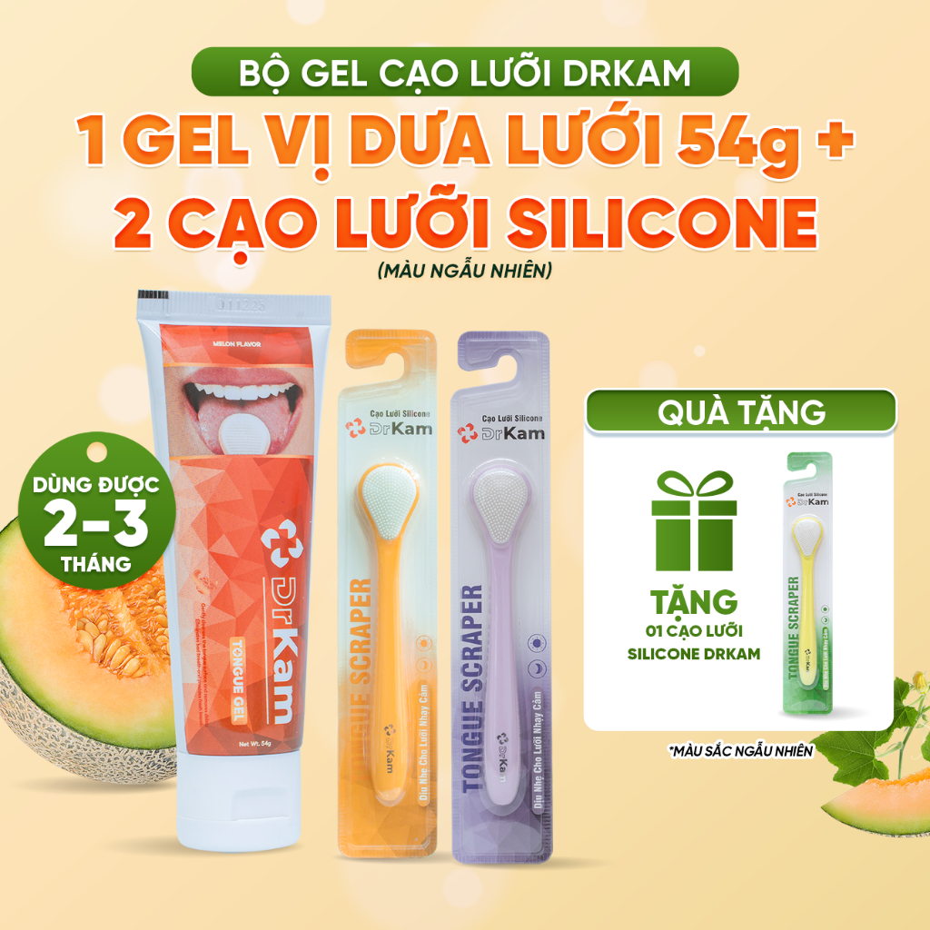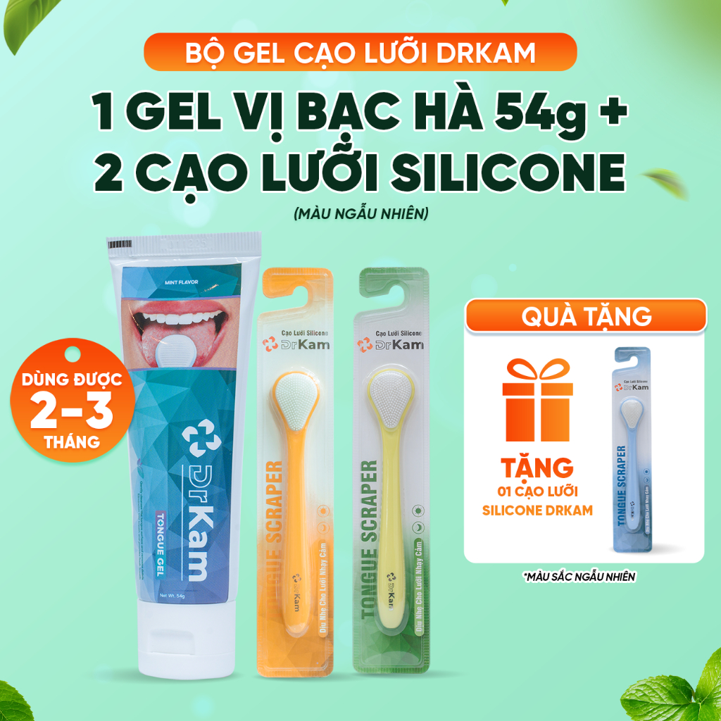 Bộ Gel Cạo Lưỡi DrKam: Gel Cạo Lưỡi Sinh Học Và Cây Cạo Lưỡi Silicone Làm Sạch Lưỡi, Khử Hôi Miệng
