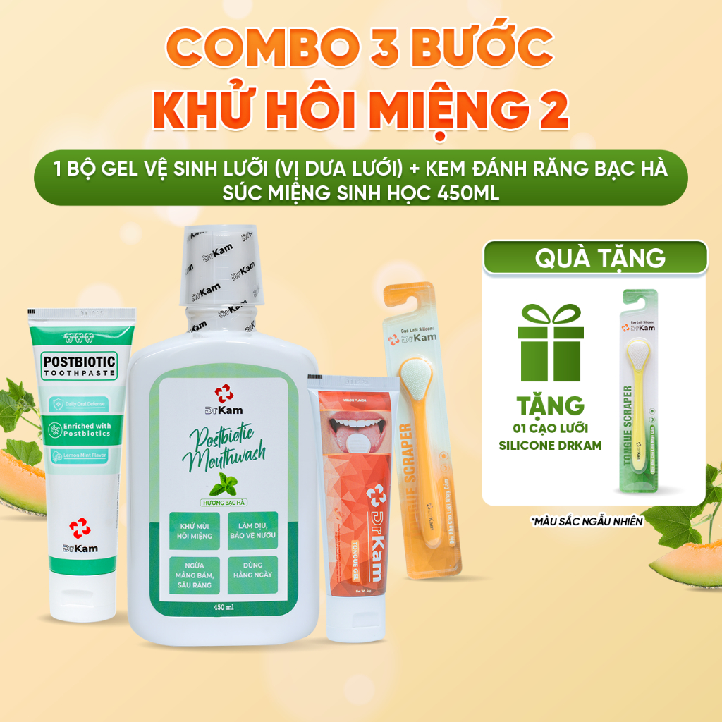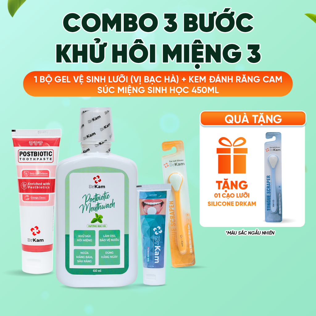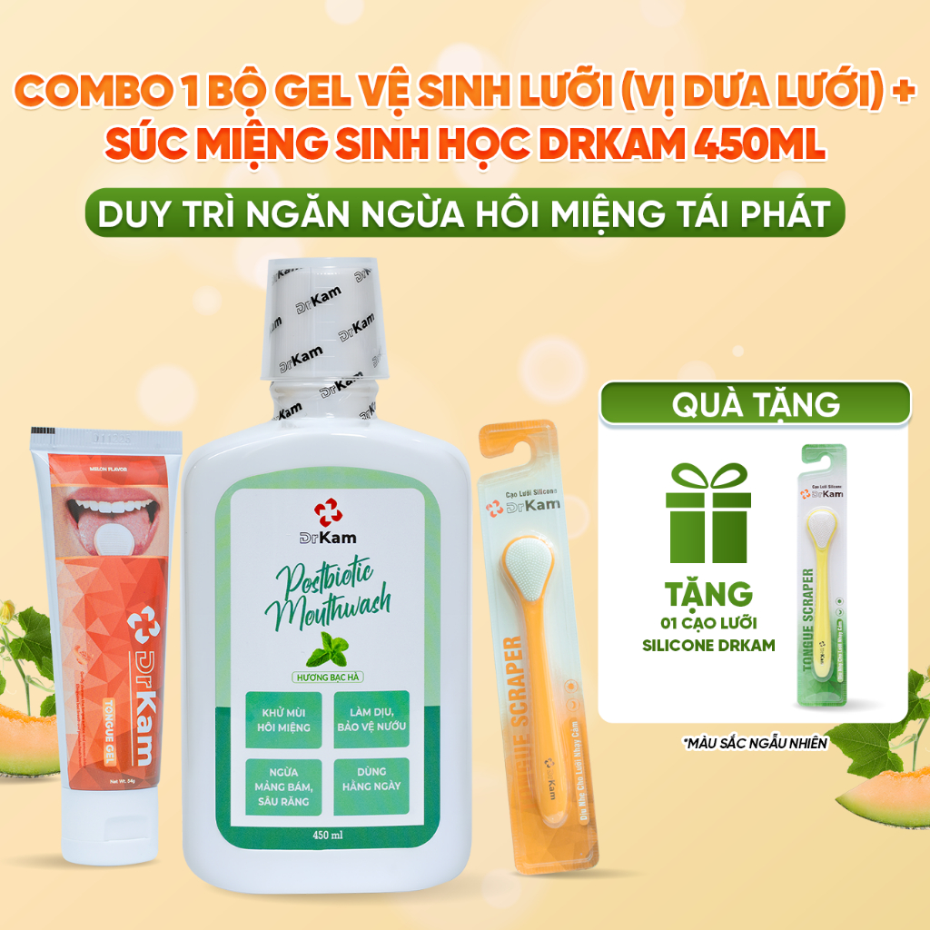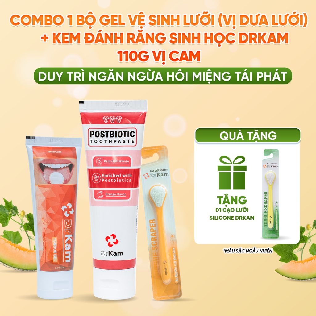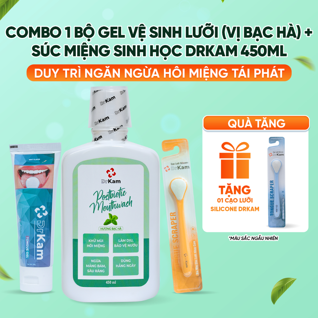 Bộ Gel Cạo Lưỡi DrKam: Gel Cạo Lưỡi Sinh Học Và Cây Cạo Lưỡi Silicone Làm Sạch Lưỡi, Khử Hôi Miệng