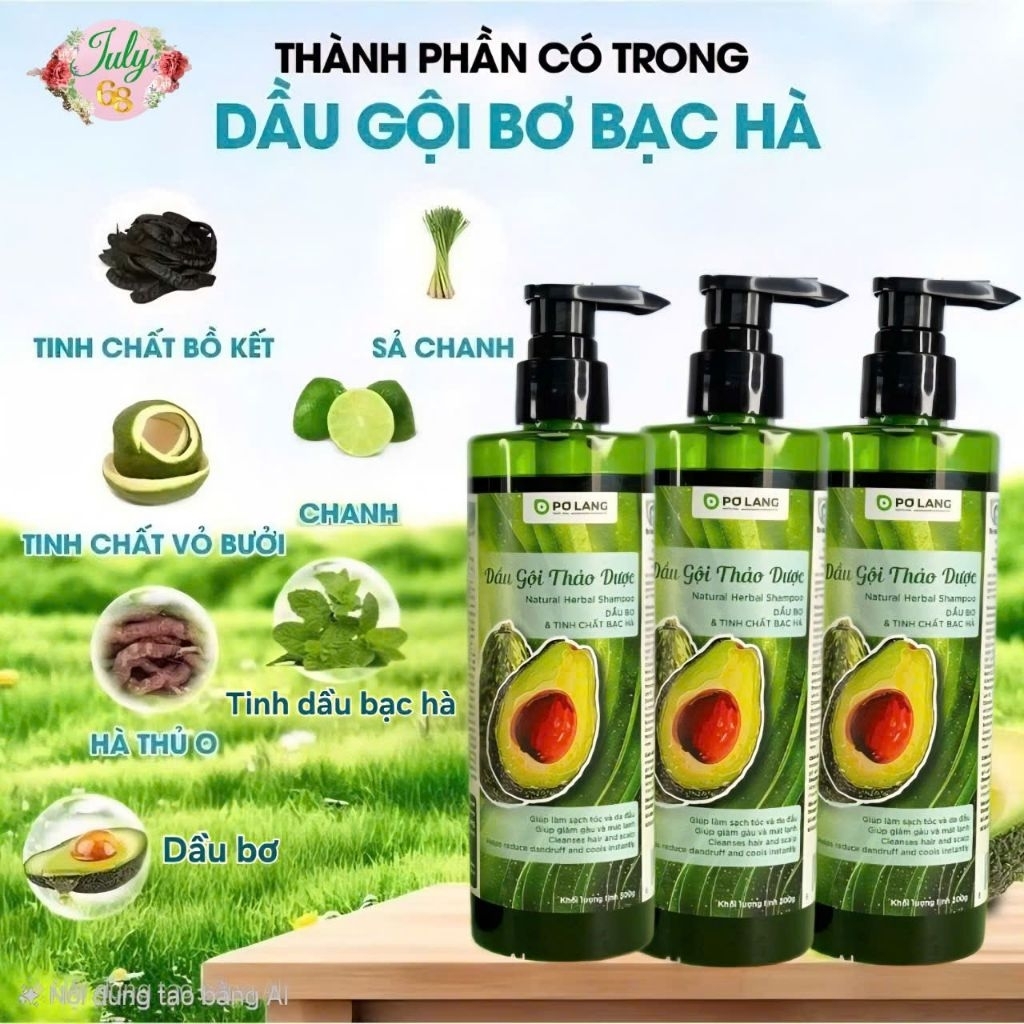 (CST)Dầu gội thảo dược PƠ LANG: Bơ Gừng/ Bạc hà (Date 1/2027) Giảm gãy rụng. Dưỡng tóc mềm tự nhiên.