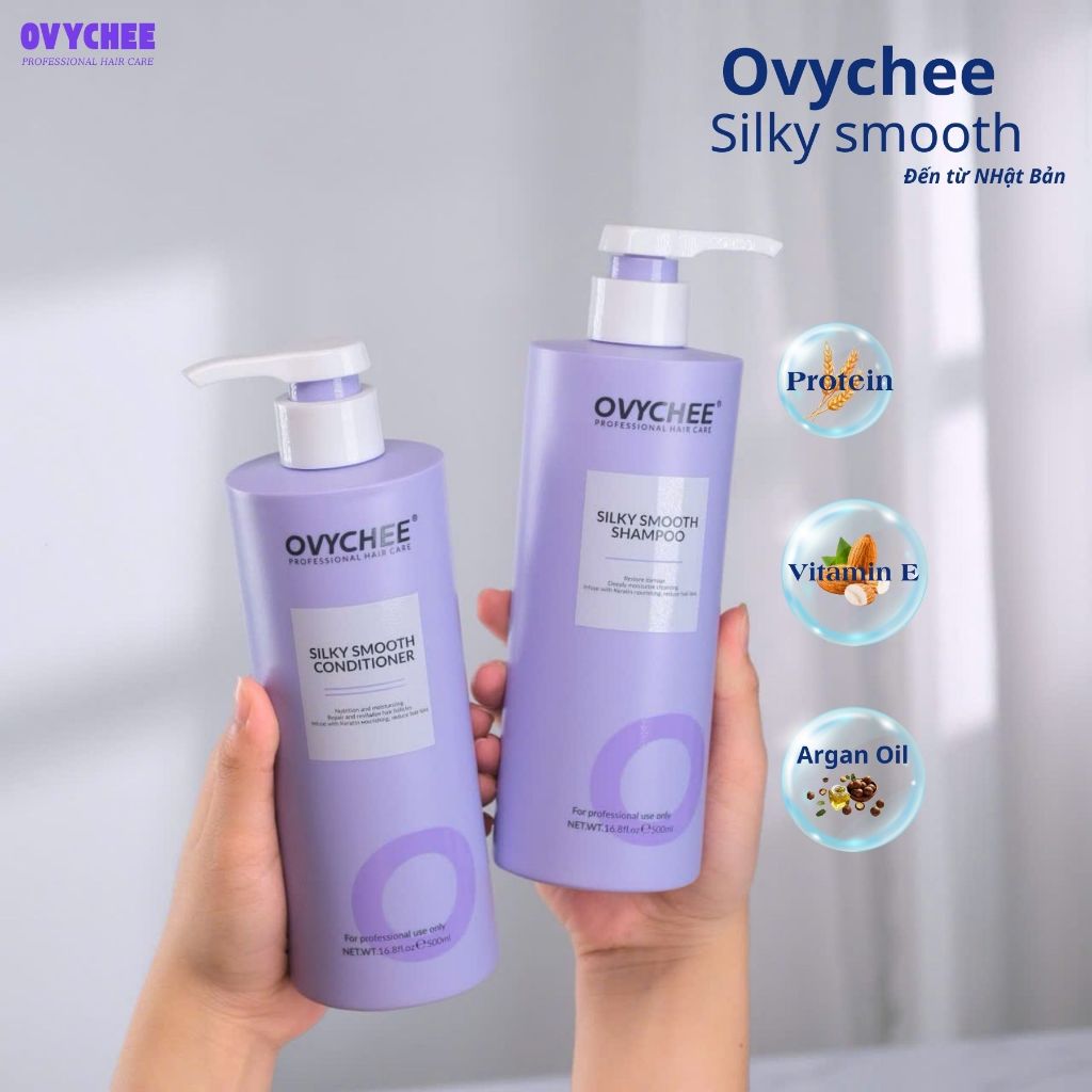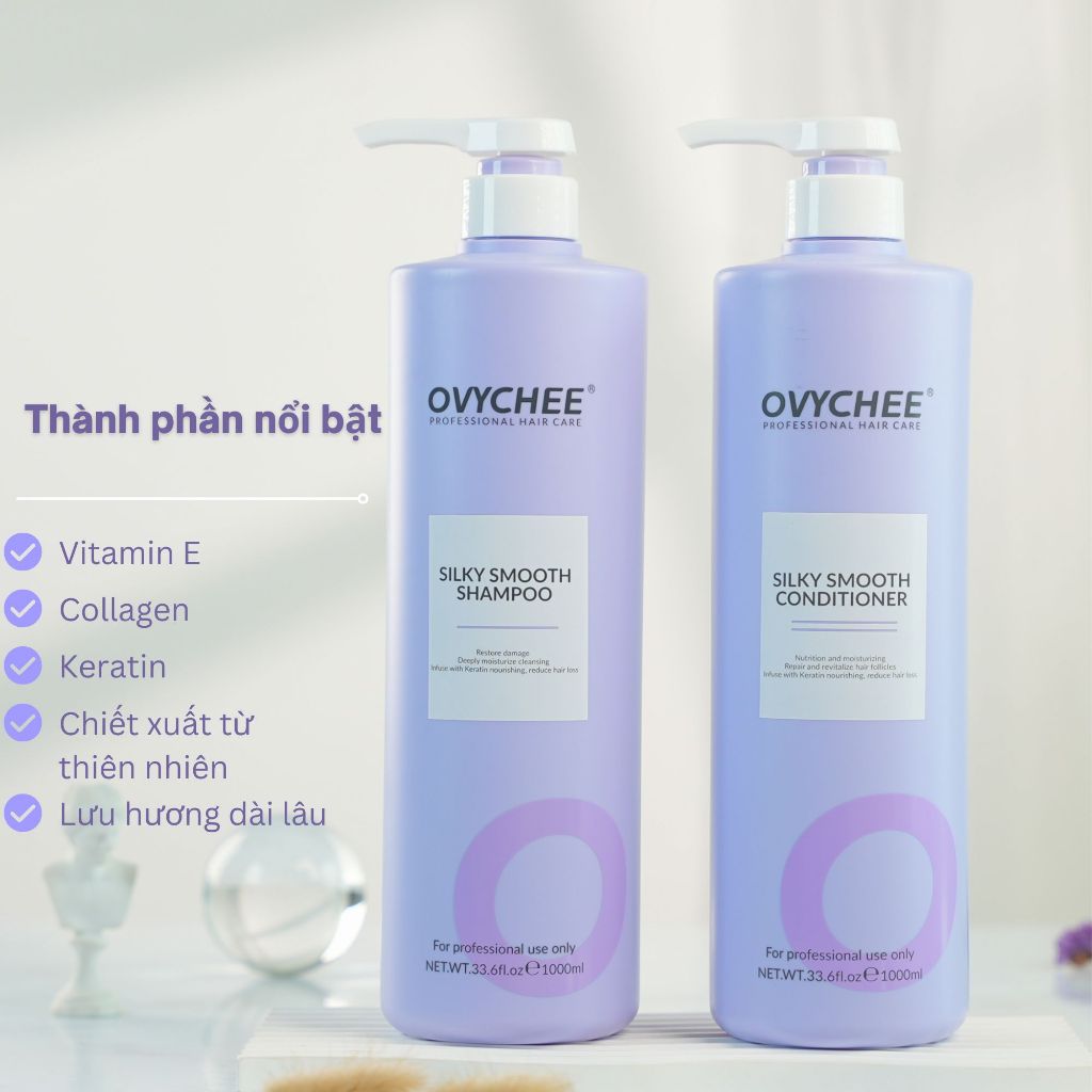 Combo Dầu Gội Xả Ovychee Silky Smooth Shampoo 1000ml/(chai) hỗ trợ phục hồi mềm mượt giảm rụng tóc
