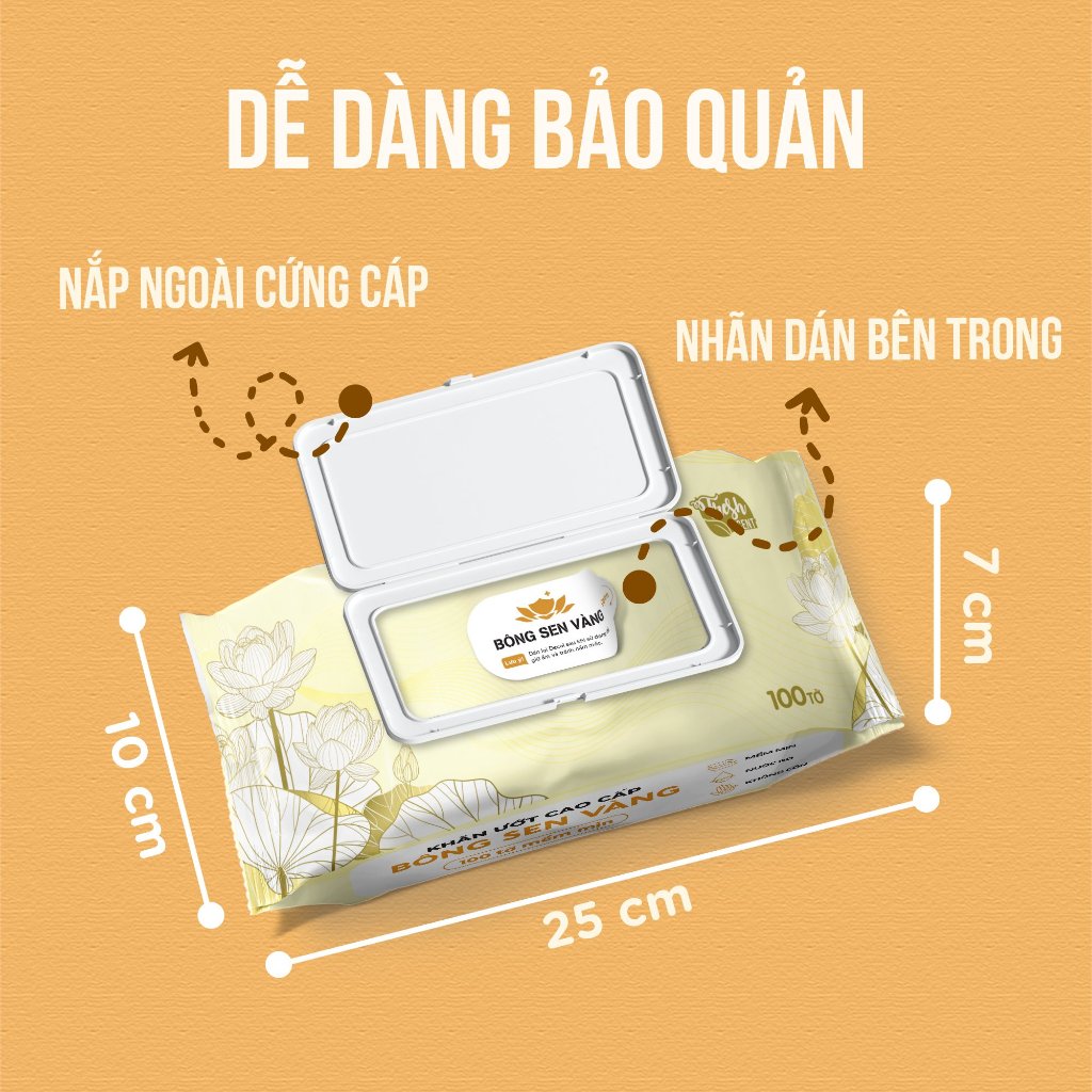 Khăn Ướt Cao Cấp Bông Sen Vàng 100 Tờ Không Cồn, Không Parabens dành cho em bé