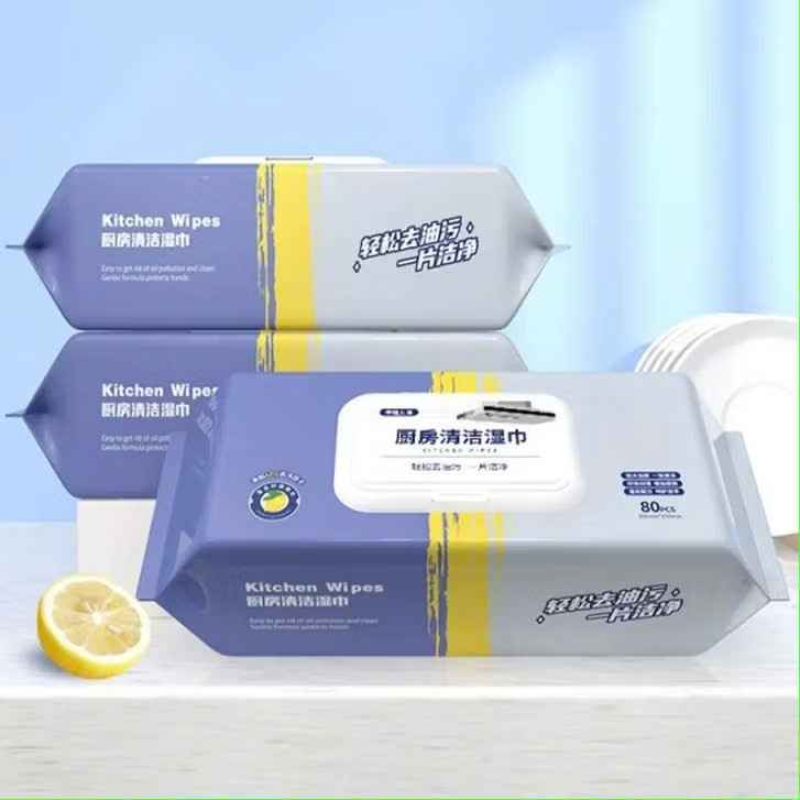 GIẤY ƯỚT VỆ SINH NHÀ BẾP - Bịch Khăn Giấy Lau Bếp Tiện Lợi,Bịch Giấy Ướt 80 Tờ Lau Bếp Kháng Khuẩn An Toàn