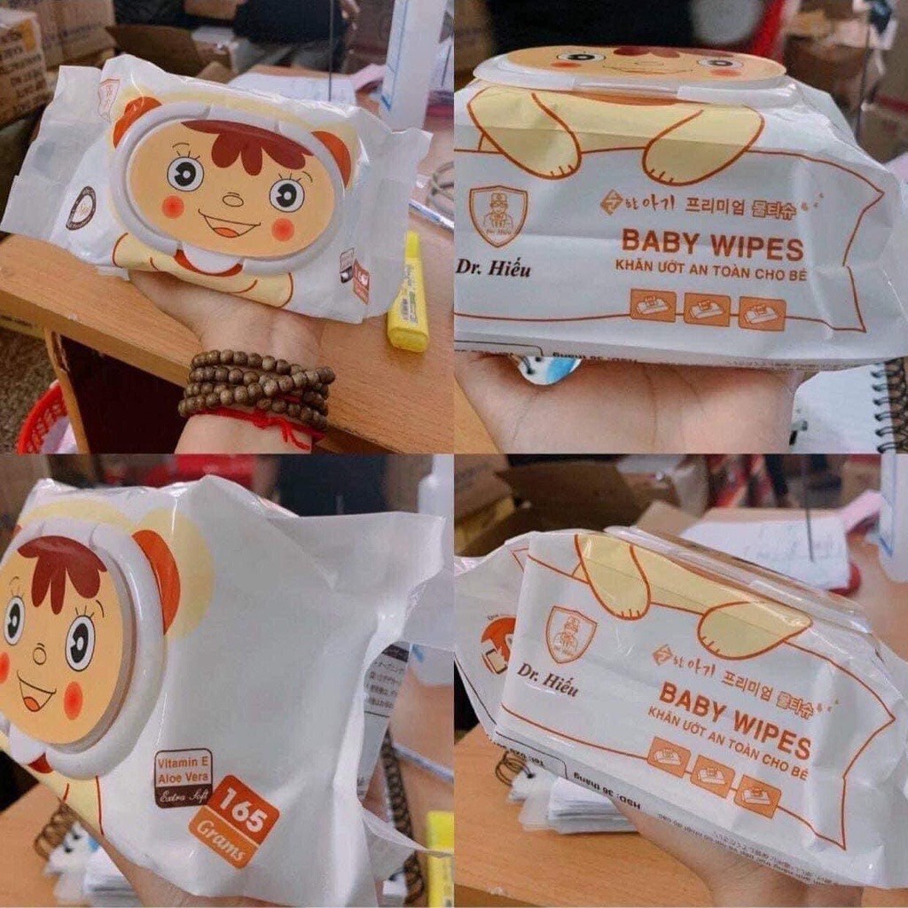 Khăn Ướt Dr.Hiếu An Toàn Cho Bé Không Mùi Gói To 165gr - Có giấy Chứng Nhận