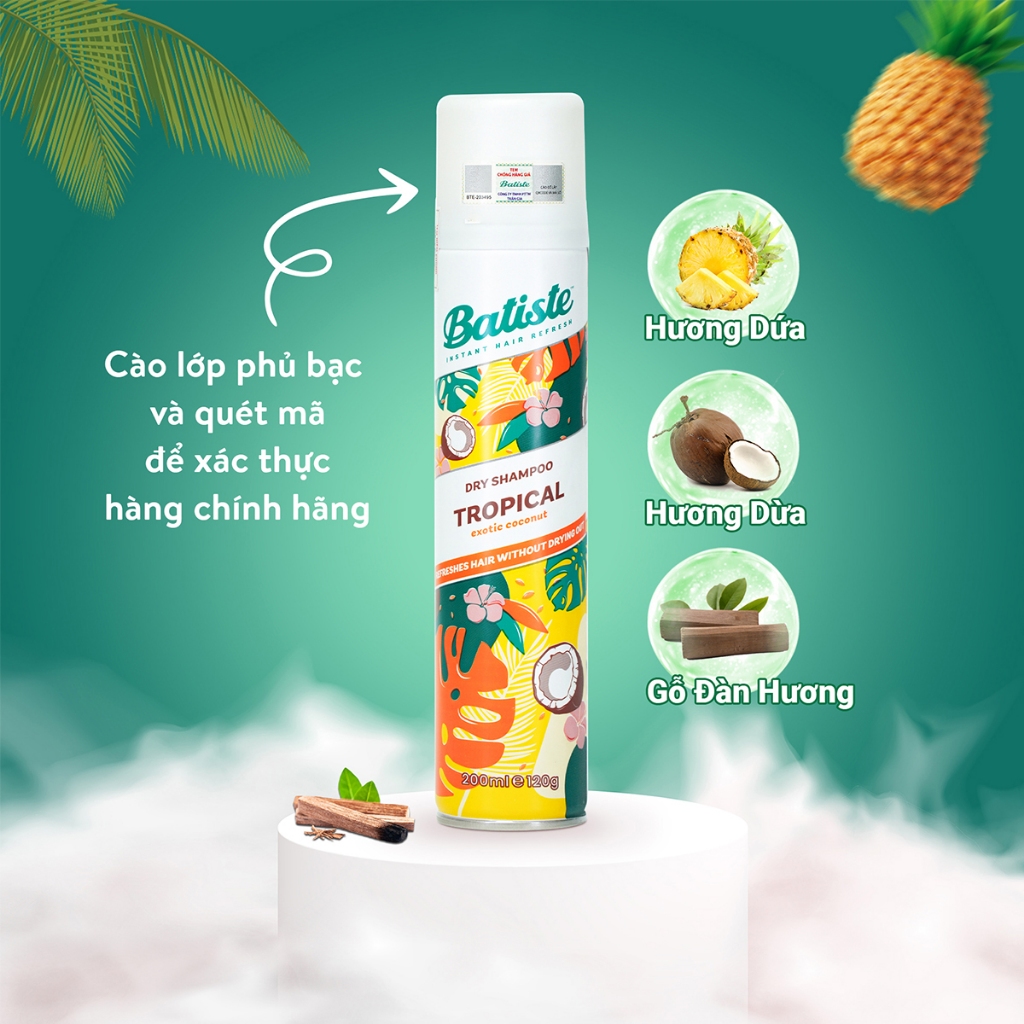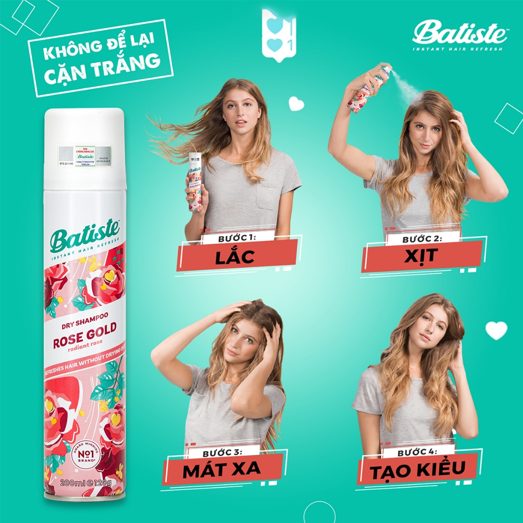 Dầu Gội Khô Batiste Sạch Dầu Nhờn, Hết Ngứa, Thơm Bồng Bềnh Tức Thì - Batiste Dry Shampoo 50ml/200ml