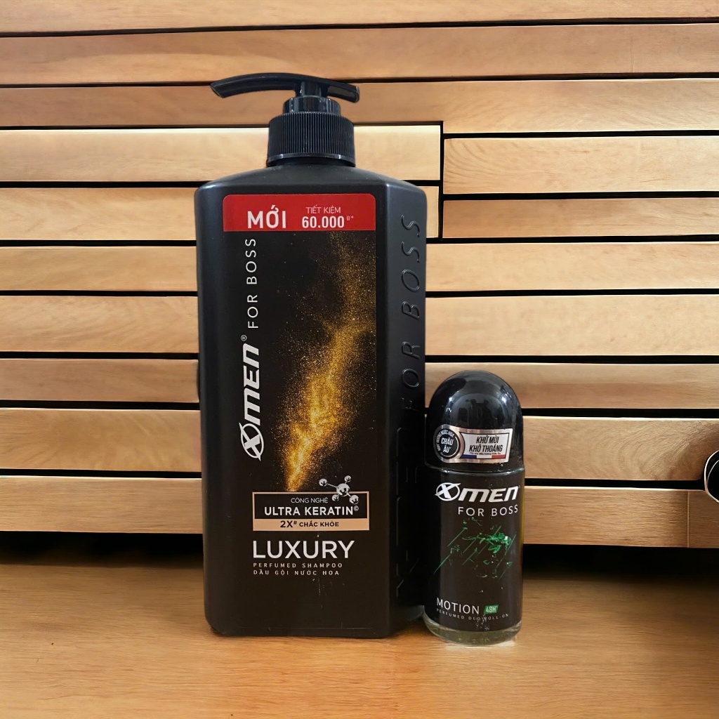 Dầu gội hương nước hoa xmen for boss 650g tặng kèm lăn xmen màu xanh leg 40ml