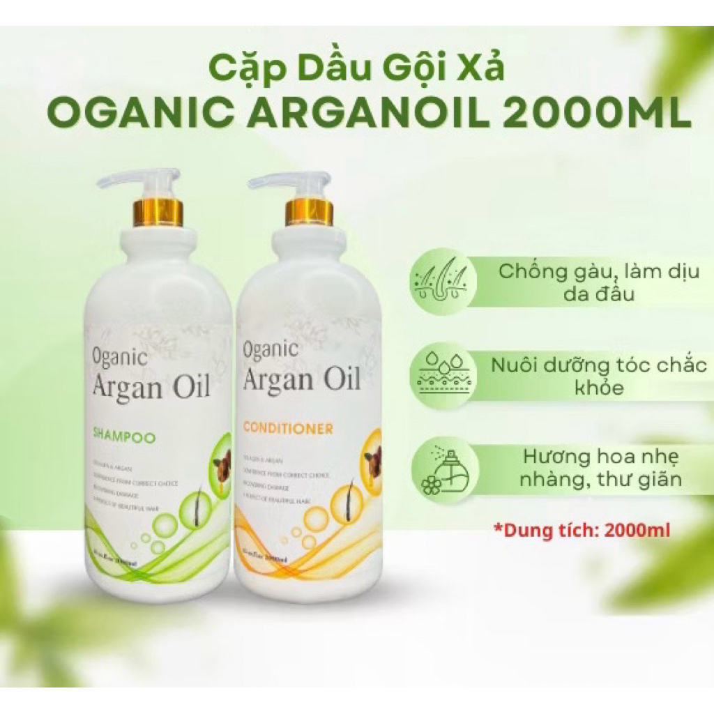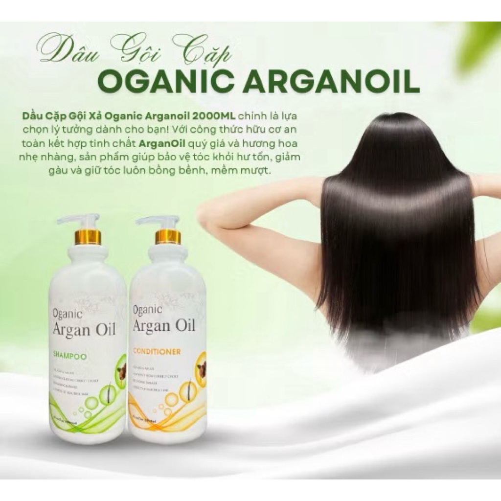 Cặp Dầu Gội Xả Organic Arganoil 2000ml Bộ Dầu Gội Hương Hoa Nhẹ Nhàng Chống Gàu Dưỡng Ẩm Bảo Vệ Tóc Chính Hãng