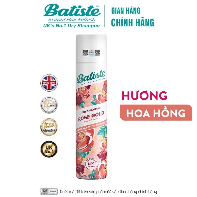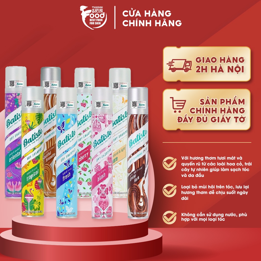 Dầu Gội Khô Giúp Làm Sạch, Ngăn Bết Dính Tóc Làm Bồng Bềnh Tức Thì Batiste Dry Shampoo 200ml