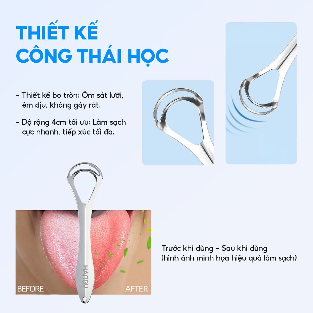 Cạo Lưỡi Kép Inox HANGY – Làm Sạch Mảng Trắng, Hỗ Trợ Giảm Hôi Miệng, Vệ Sinh Lưỡi Hàng Ngày