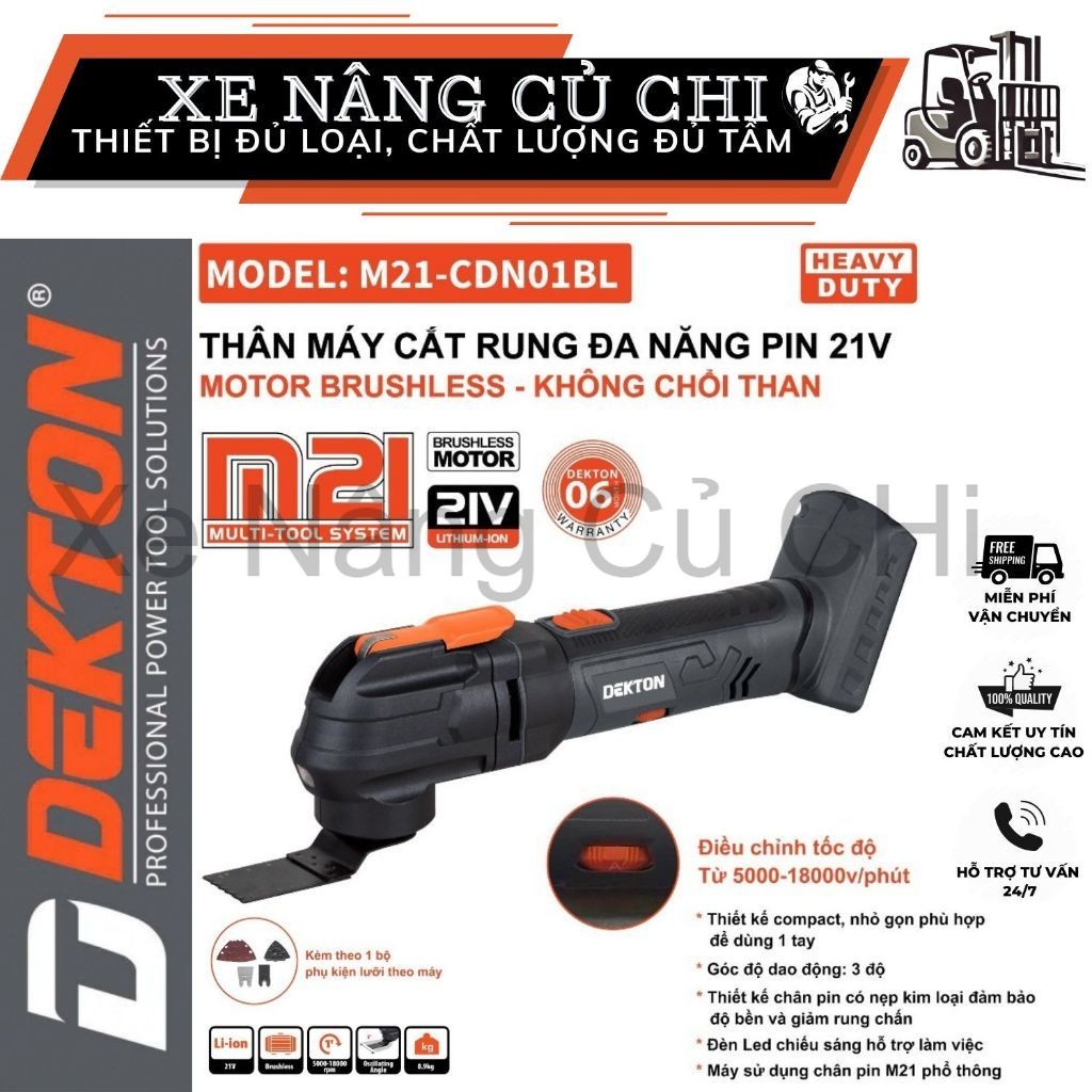 Máy cắt rung đa năng Dekton M21 CDN01BL, tốc độ 5000 đến 18000rpm,không chổi than,pin phổ thông Makita