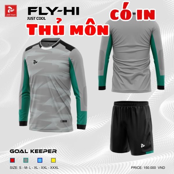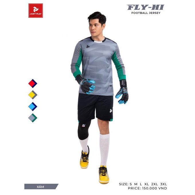 Áo bóng đá thủ môn dài tay màu Xám,chính hãng Justplay FLY – HI II có đệm bảo vệ tay và đùi
