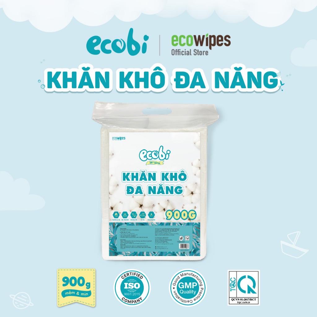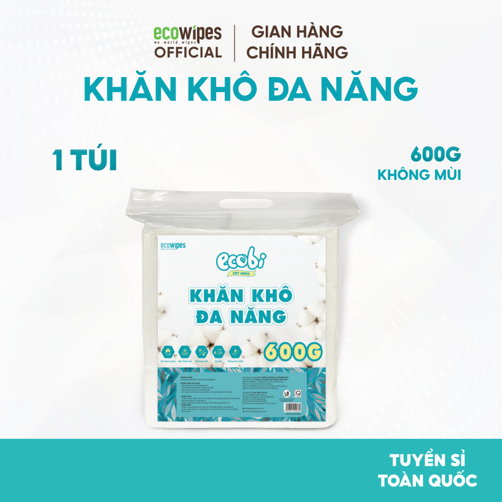 Khăn vải khô đa năng cao cấp Ecobi túi 600gram ~ 500 tờ không mùi