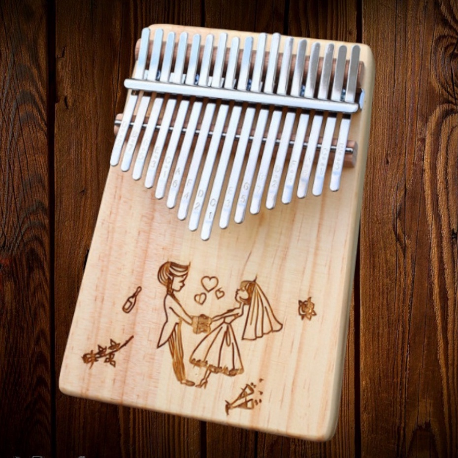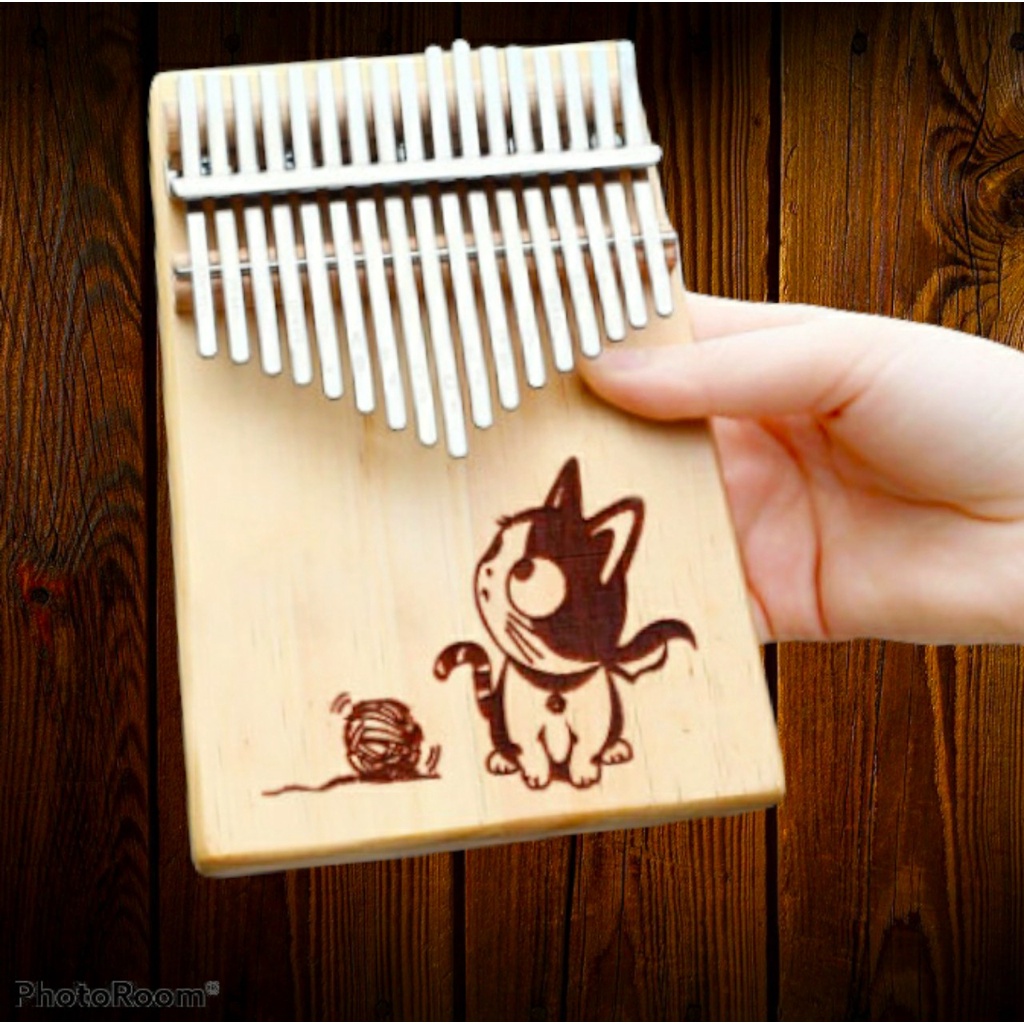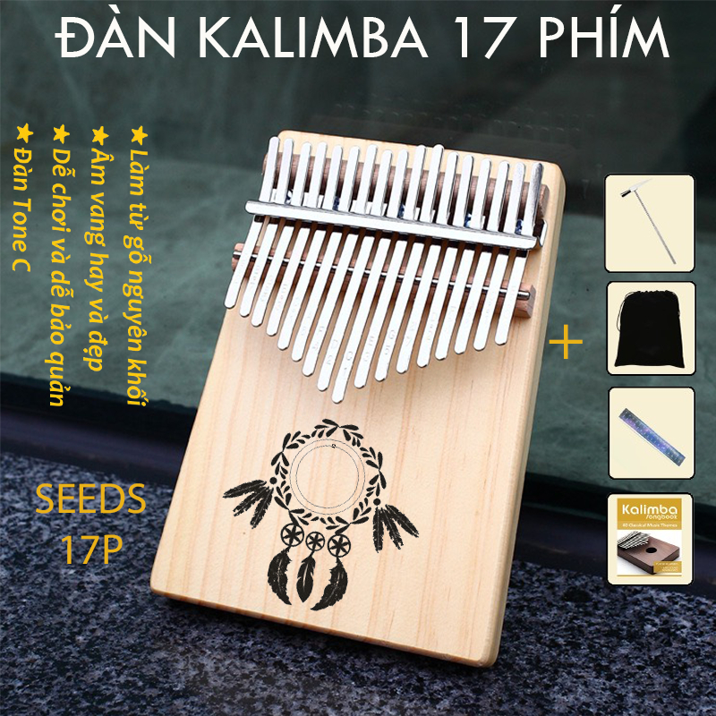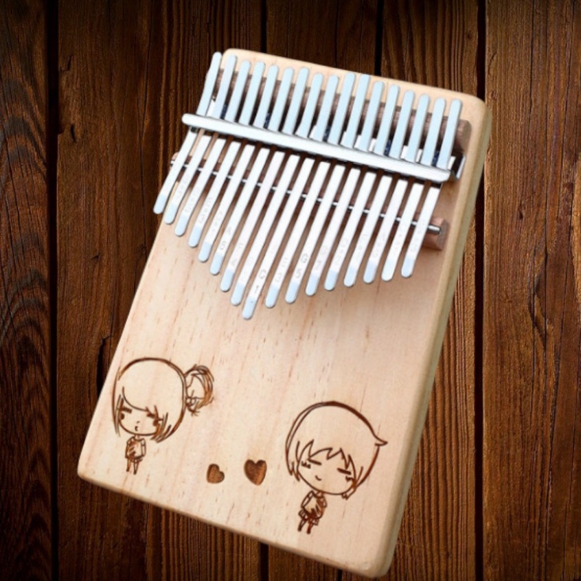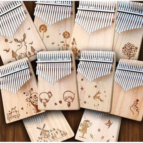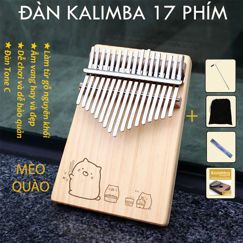Đàn kalimba gỗ thông 17 phím khắc nốt, nhiều hình cute, đầy đủ phụ kiện Tonic LZ001- Hàng chính hãng