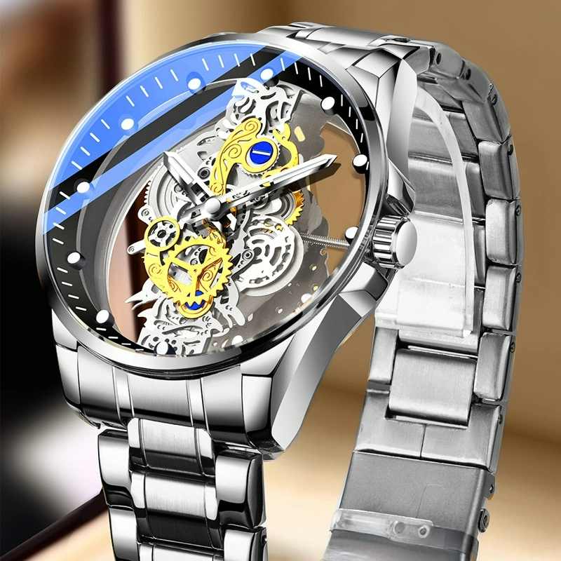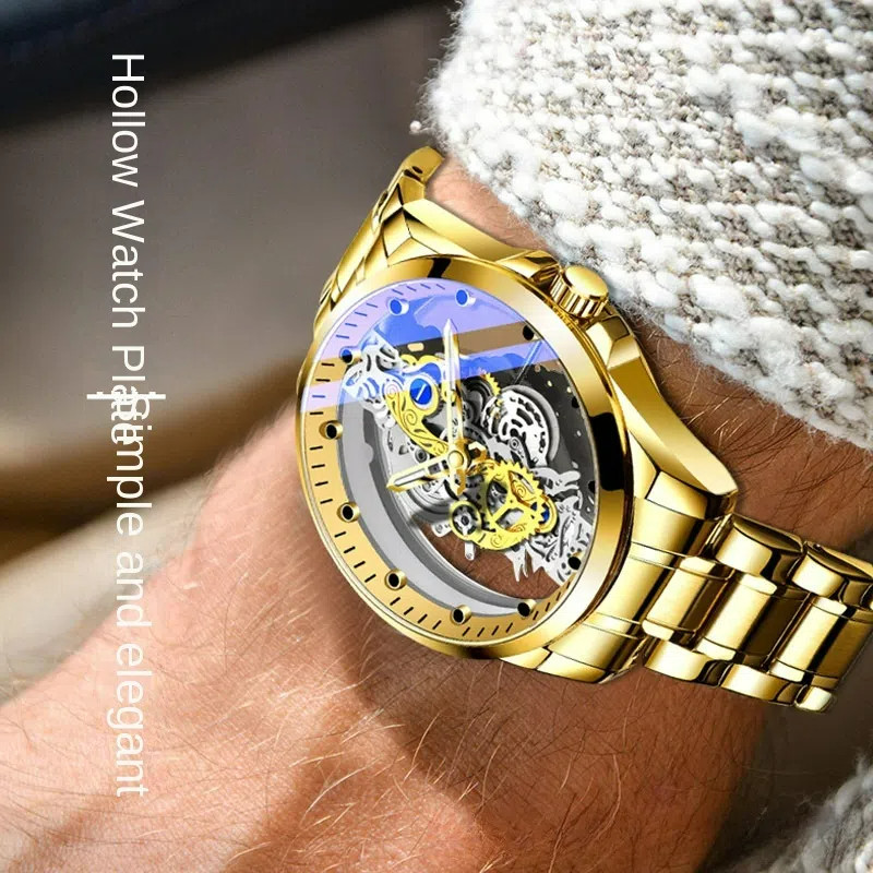 Đồng hồ cơ tự động nam - Đồng hồ thạch anh chống nước trong suốt hai mặt phát sáng